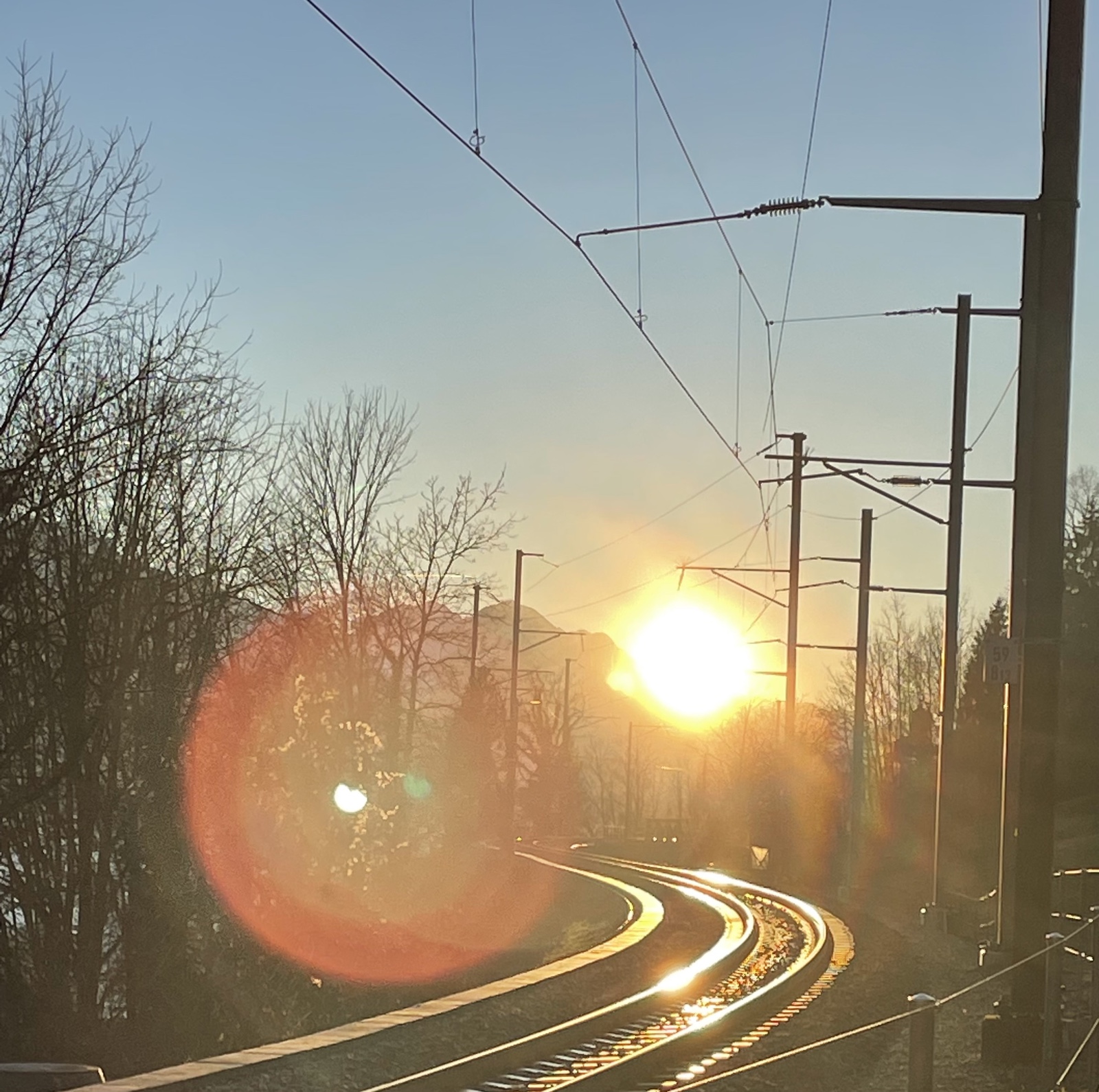 Die in der Abendsonne gleissenden Schienen der Brienzerseeuferbahn wecken meine Reiselust.