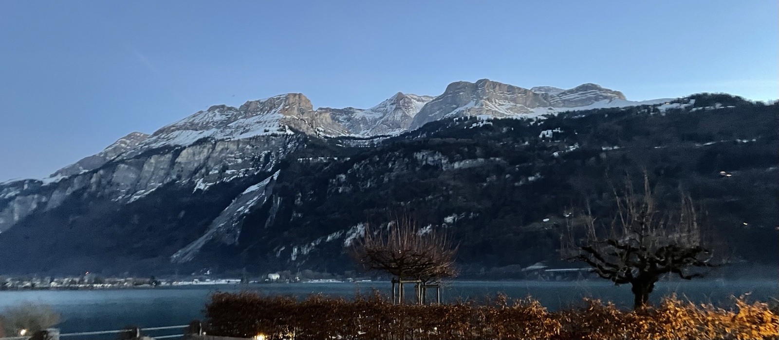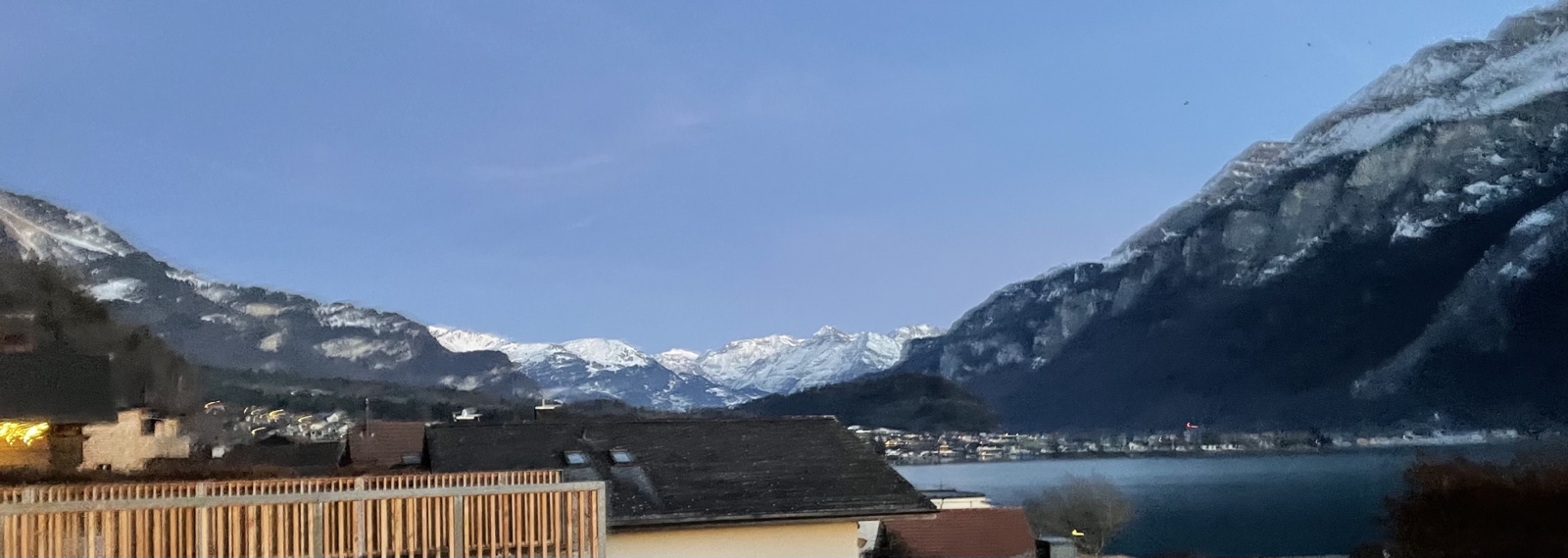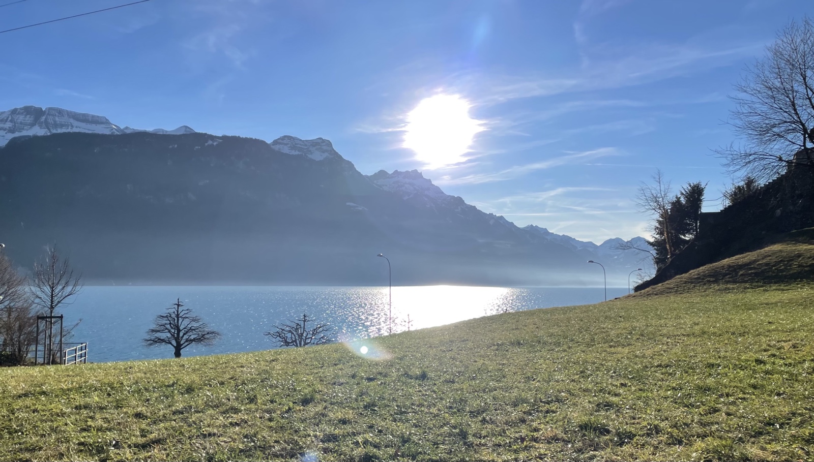In der Wärme der Sonne tauen meine Zehen und Finger bald einmal auf. Ich geniesse den Ausblick über den See,