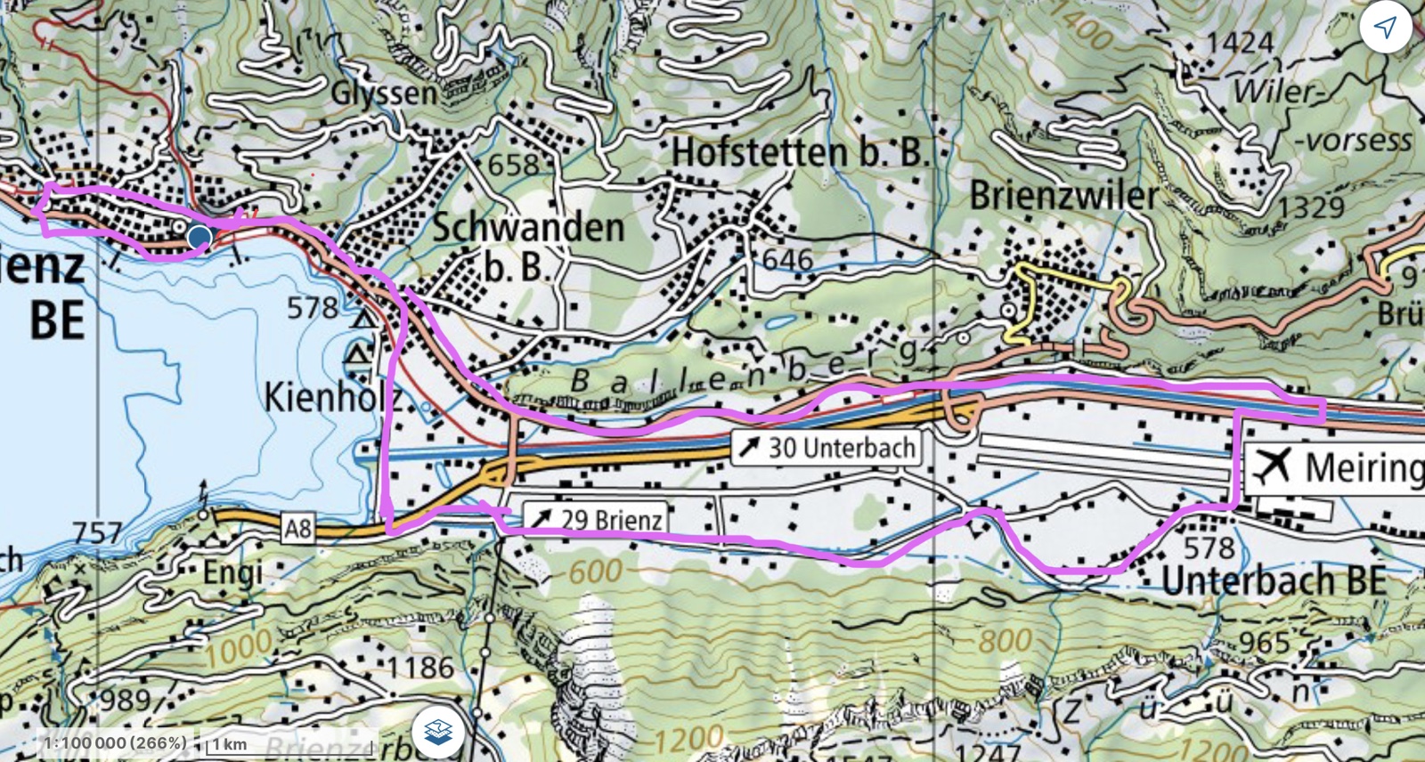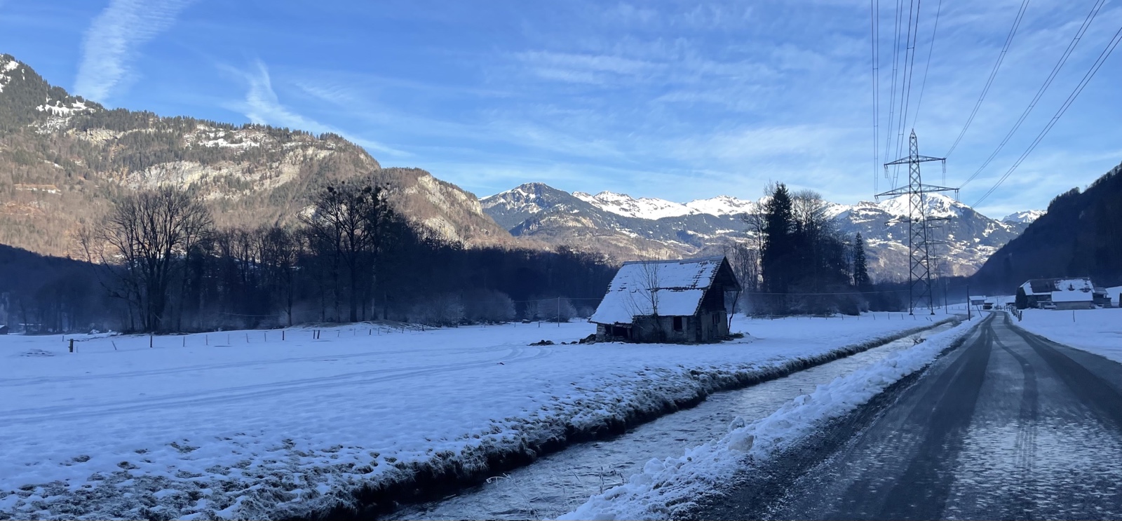 Die Auffahrt zur Strassenkreuzung Brienzwiler gelingt mir nur knapp. Der Veloweg bzw. die Nebenstrasse ist hier nämlich grösstenteils vereist, immer wieder dreht mein Antriebsrad durch. Es hat viel Verkehr auf der grossen Strasse, also verzichte ich darauf nach Brienzwiler hoch zu radeln und via Ballenberg heimzukehren.