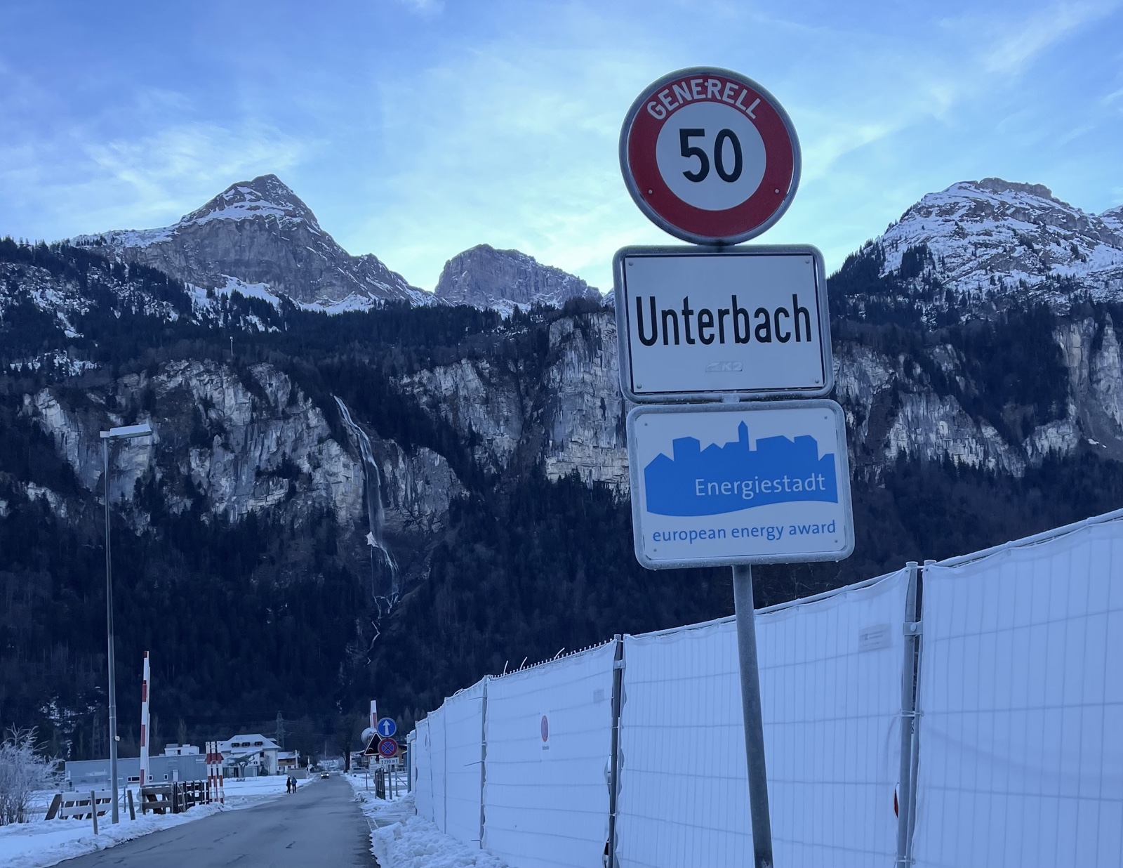 Auch das Ortsschild von Unterbach lasse ich hinter mir liegen. Energiestadt Unterbach, wie ist das möglich? Nirgends, in keinem Ort der Schweiz, wird pro Kopf so viel Energie verschwendet und vernichtet wie hier in Unterbach!