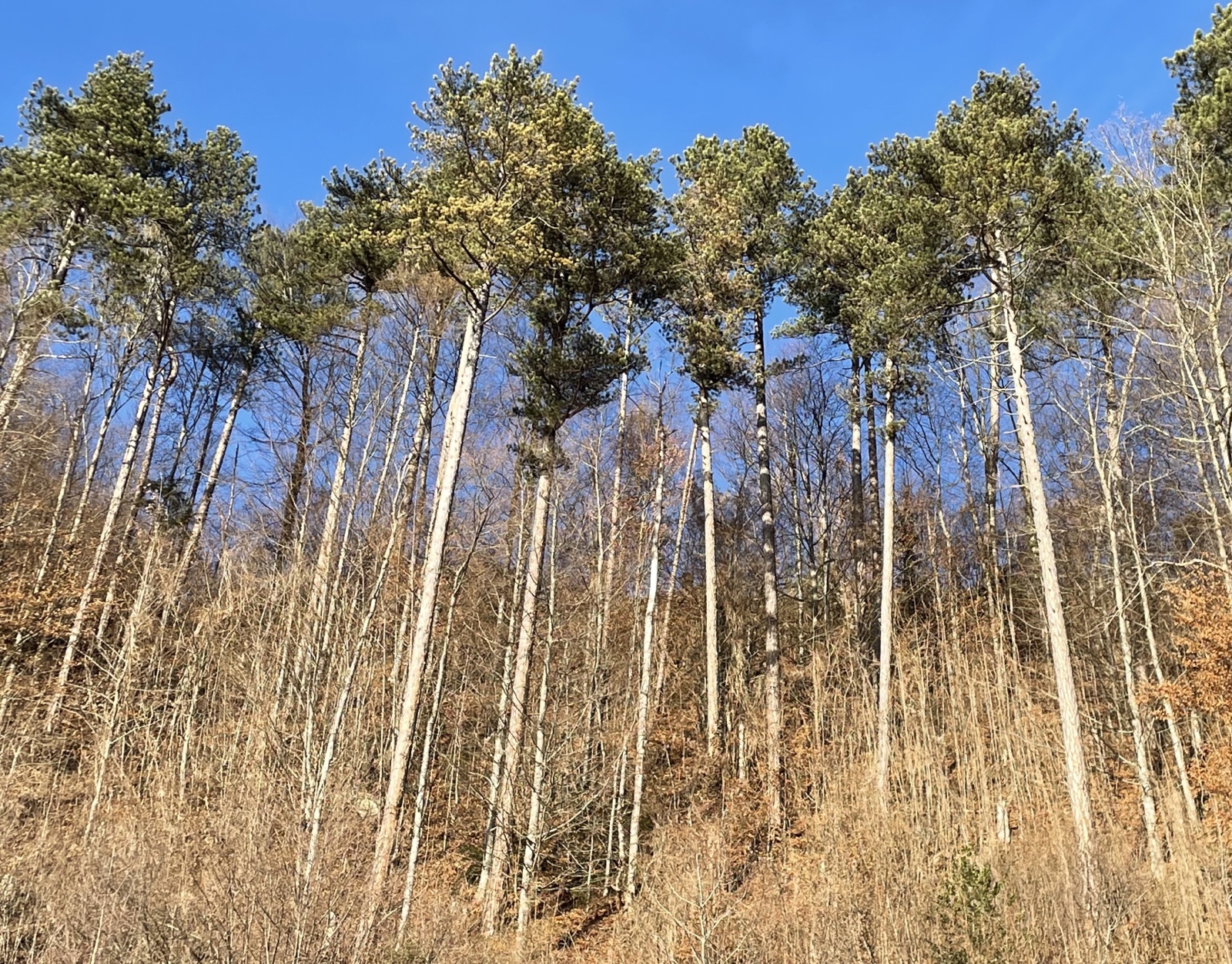 Ich halte Ausschau nach Wild. Im Schnee sind unzählige Spuren zu sehen, primär von vierbeinigen Hirschen, aberauch von Rehen und Wildschweinen. Nichts zu sehen, ausser einmal etwas, dass sich am Waldrand oben bewegt.