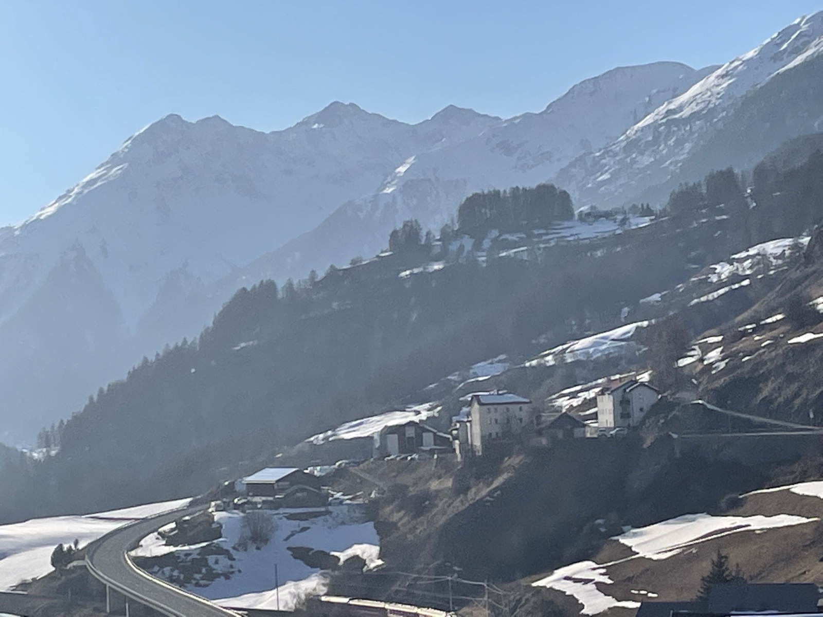 Seit einer Woche macht meine ältere Schwester Ferien in Ardez, in der süd-östlichen Ecke der Schweiz, im Unterengadin. Sie hat da ein Hotel gefunden, das seit Corona zu einem Appartemenhaus umgewandelt wurde. Zimmer mit oder ohne Balkon sind relativ günstig für je eine Woche oder ein Mehrfaches davon zu buchen. Mehrere Male hat sie mich zu überzeugen versucht, auch mal dorthin mitzukommen. Gesagt getan, heute starte ich. Überstürzt gepackt Reise ich um 10.25 ab Brienz. Ein prächtiger Tag!