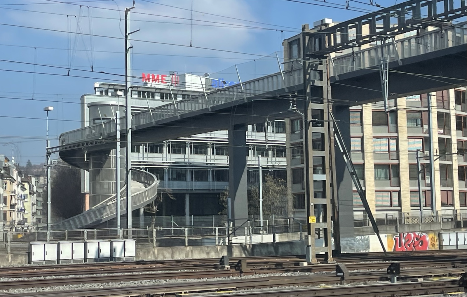 Diese Fussgängerbrücke über das Vorfeld des Zürcher Hauptbahnhofs wollte ich schon lange einmal überschreiten. Aber auch heute reicht es nicht hierzu.