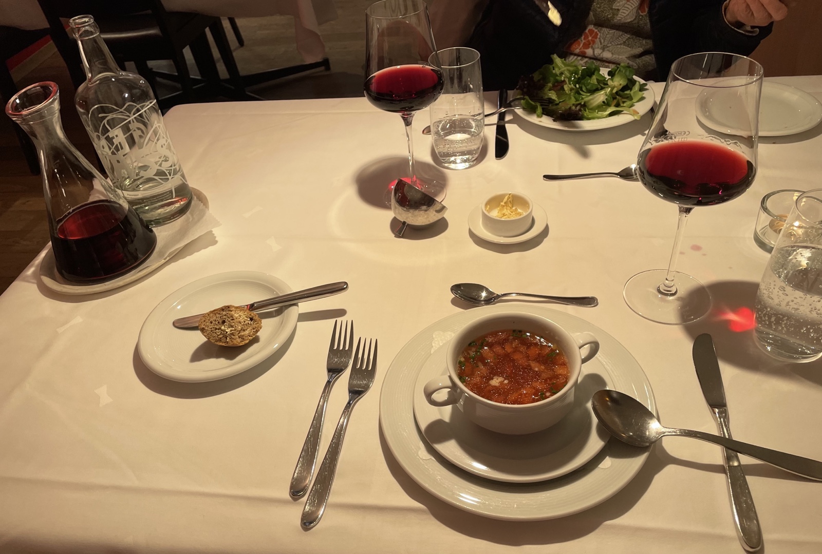Allerdings muss ich vervollständigen. Das Essen und die Getränke waren vorzüglich und die Bedienung ebenso.