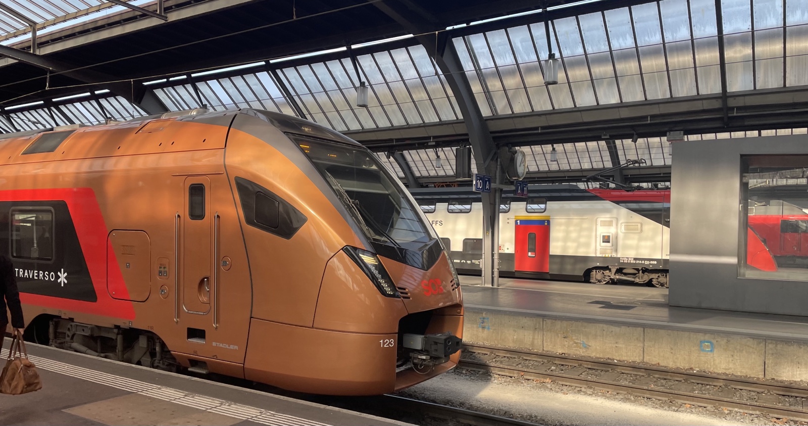 Es gibt aber noch eine andere schöne Reisemöglichkeit. Mit dem Aare Lindt Interregio der Südostbahn der seit dem letzten Fahrplanwechsel verkehrt, kann die Schweiz auch toll besichtigt werden. Ich habe mich schon längst für diesen Zug einen TRAVERSO entschieden. Es ist nämlich ein Fahrzeug aus dem Hause von Stadler Schweiz.