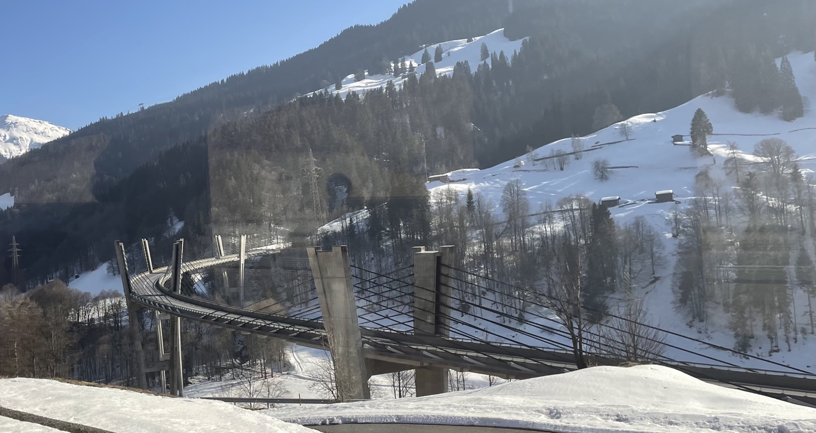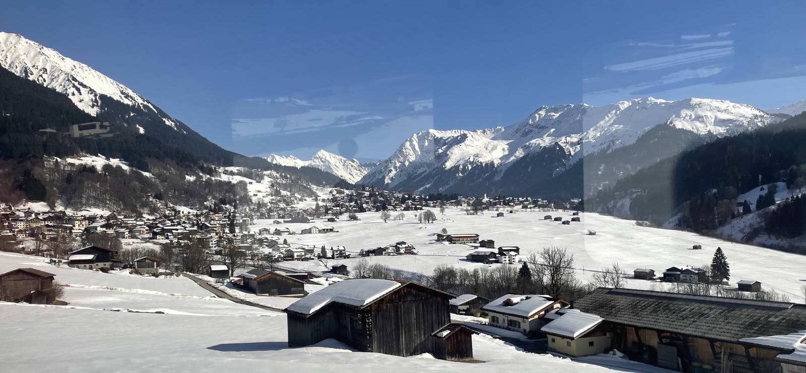 Nach dem Durchqueren der Klus fahren wir ins Prättigau ein. Die Bahn steigt nun stetig Bergan. Bald ist auch der Talboden von Schnee bedeckt.