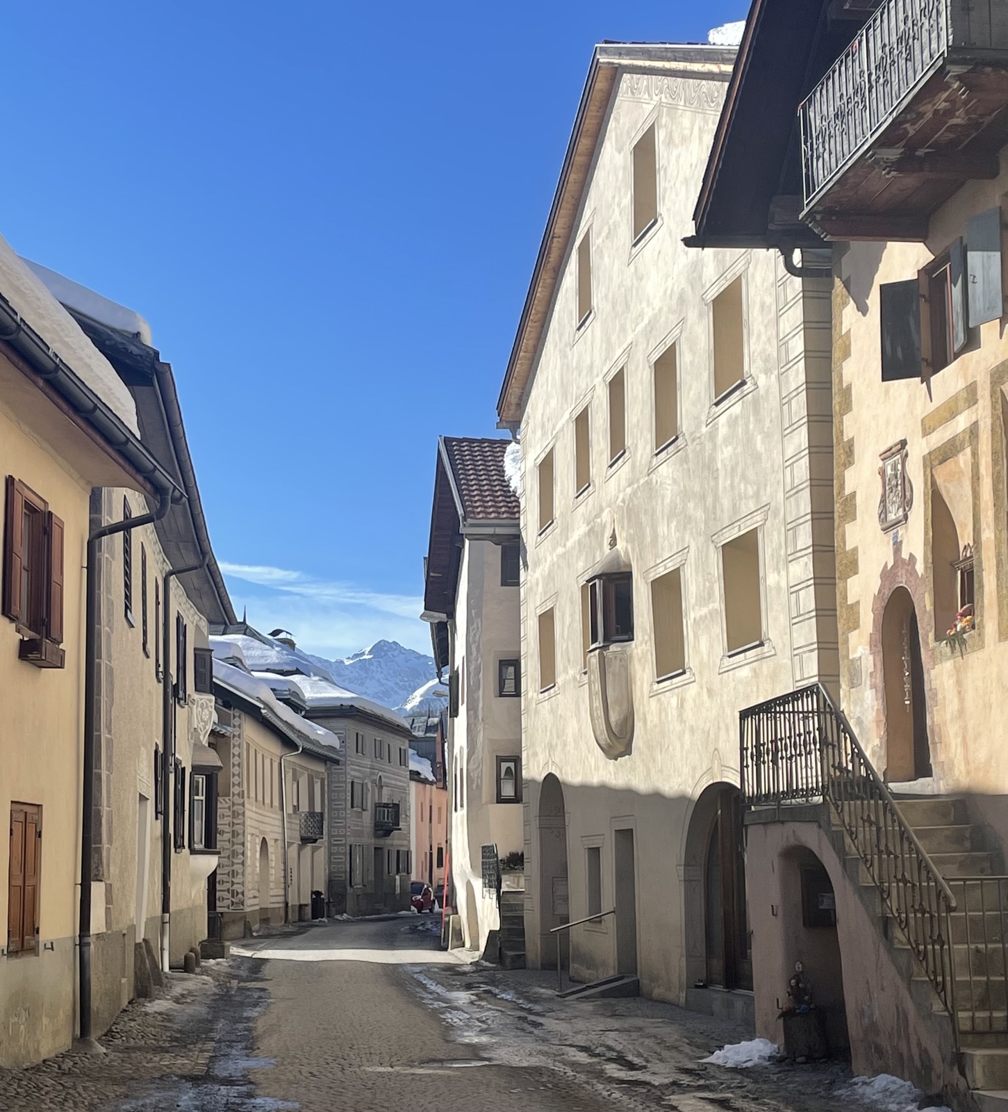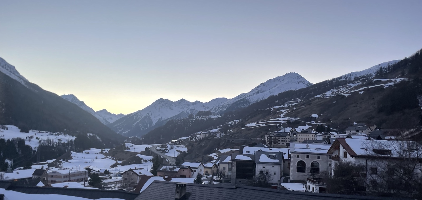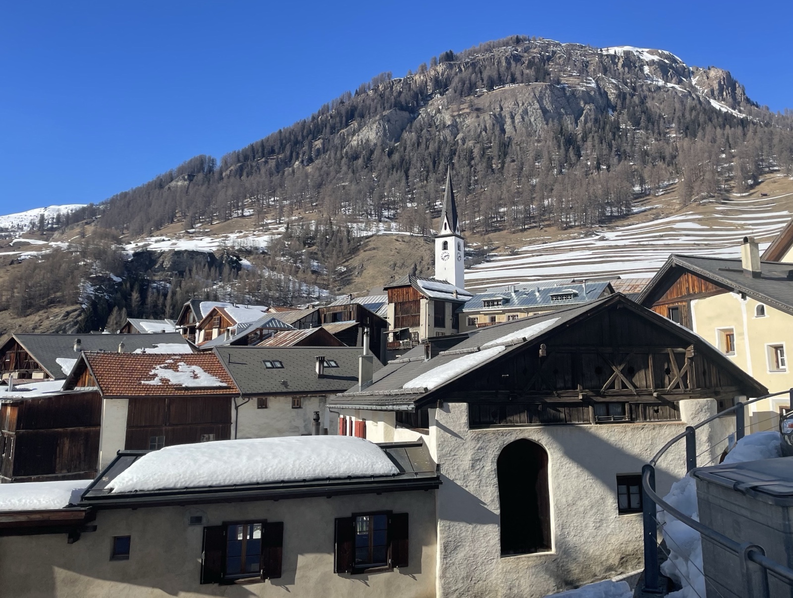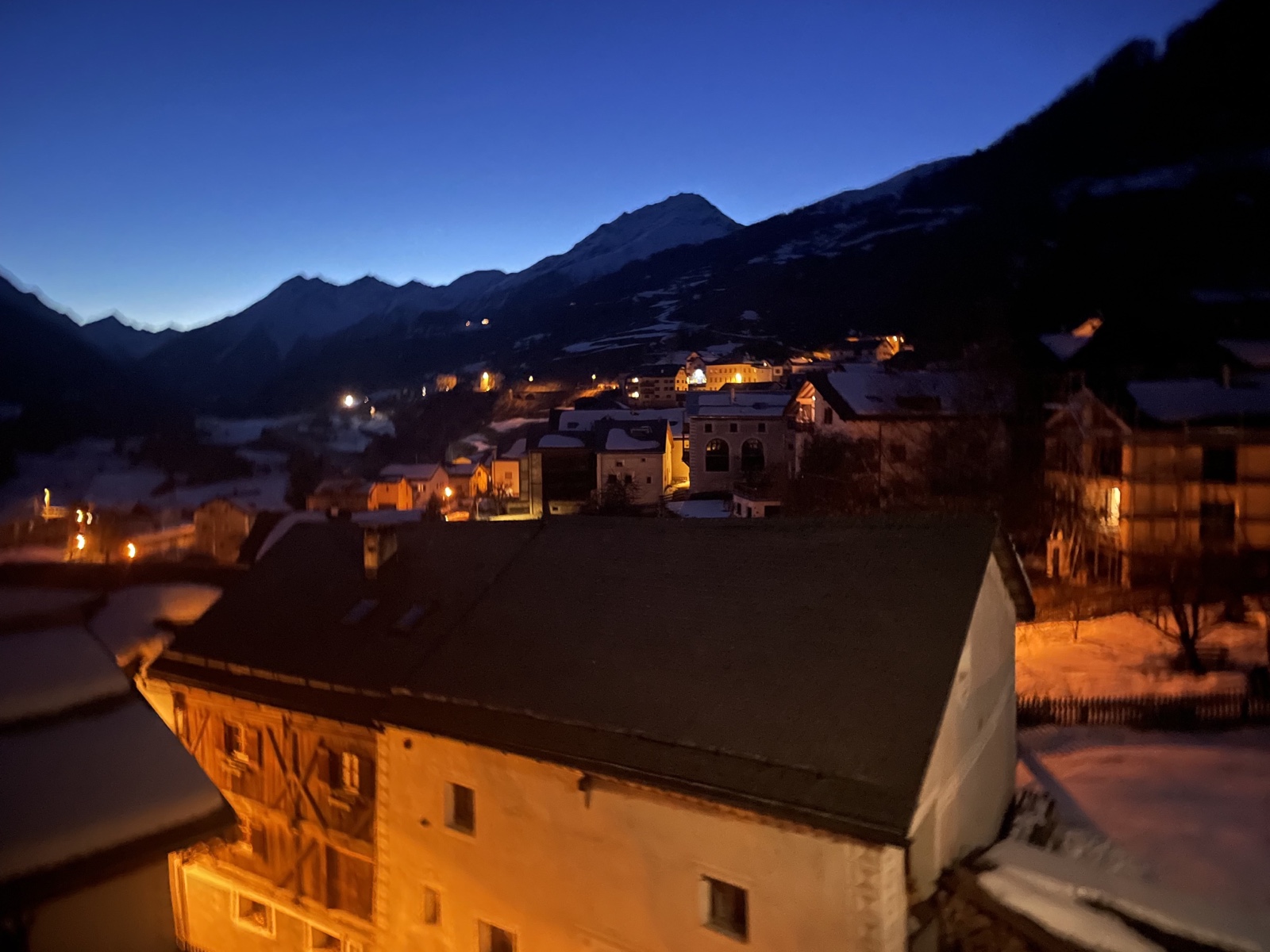 Tatsächlich, knapp 3 Stunden später ist der Himmel über Ardez tiefblau, die Frühlingssonne scheint stark vom Himmel runter und wärmt ein wenig auf.