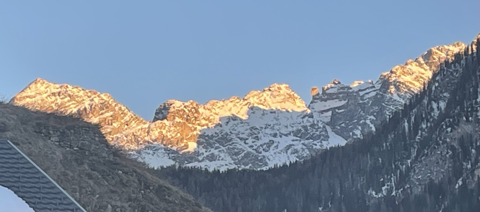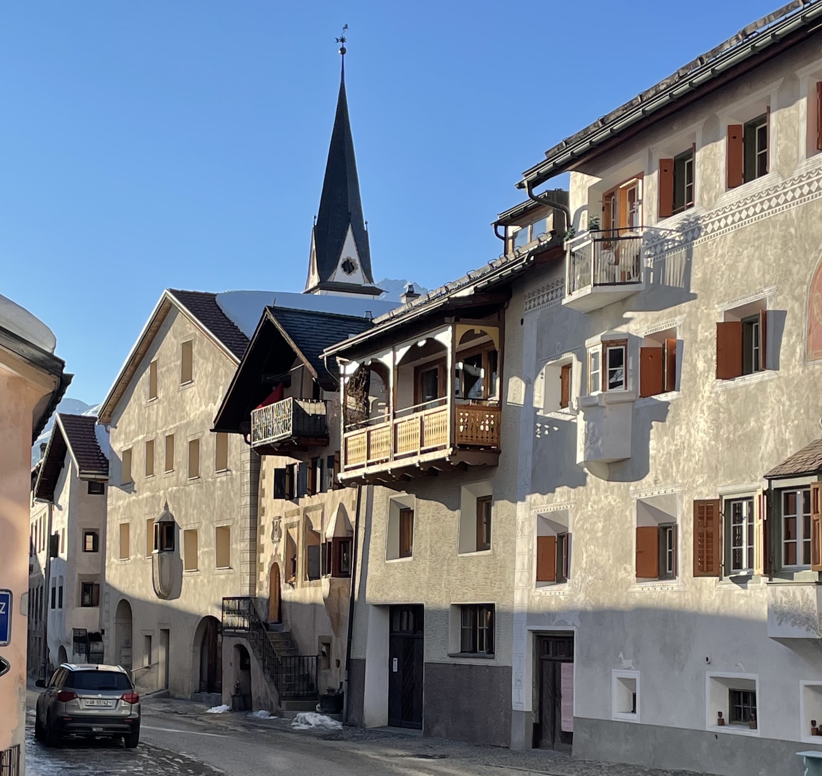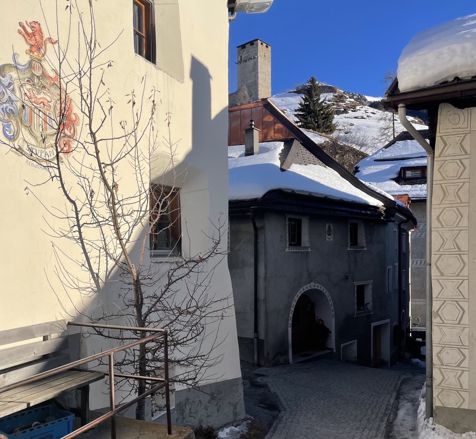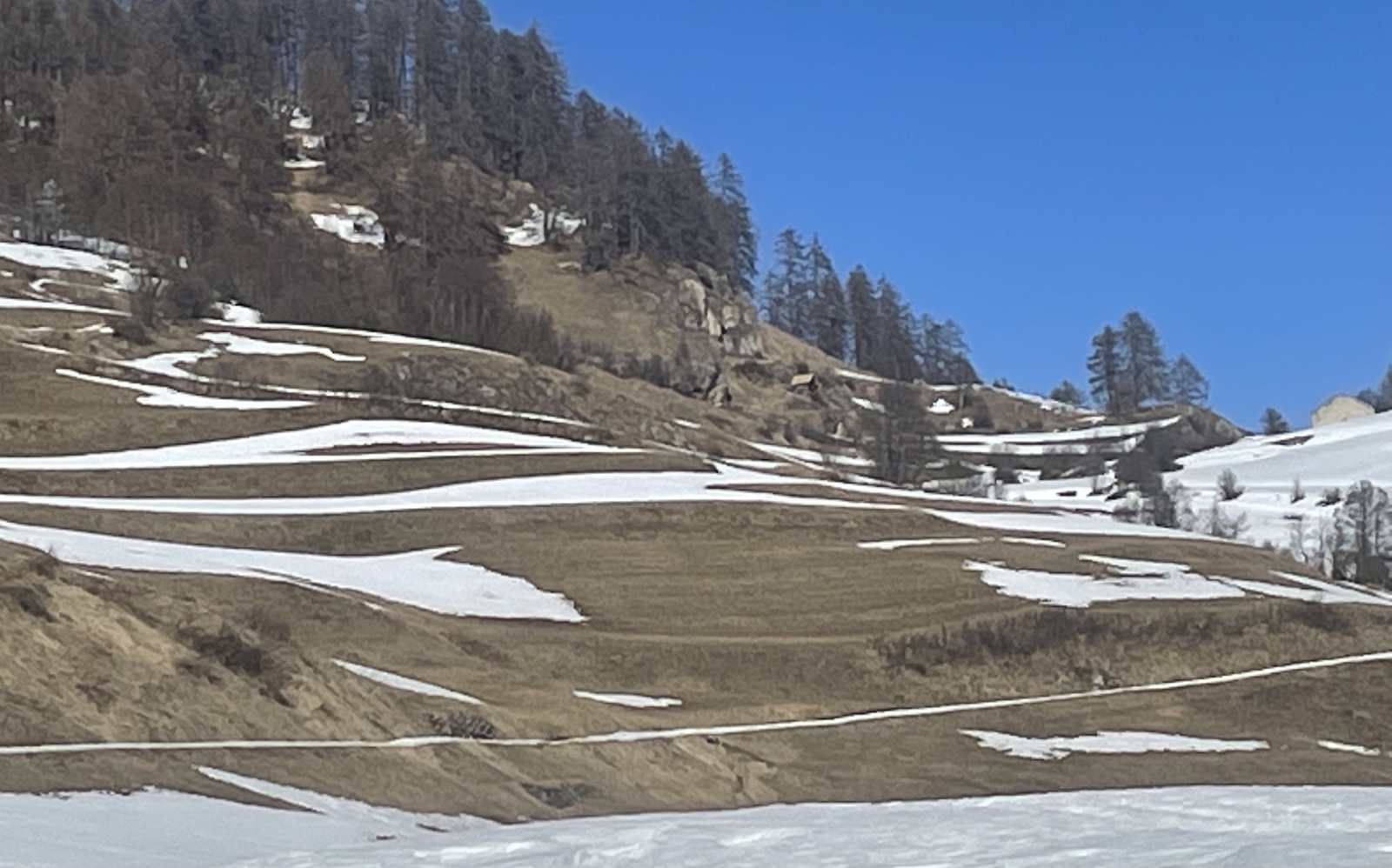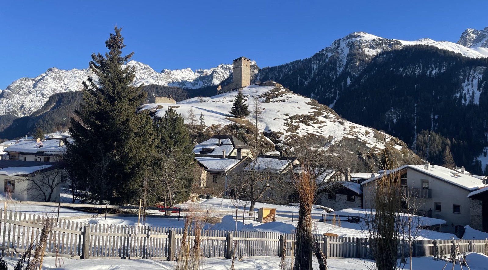 Tatsächlich, knapp 3 Stunden später ist der Himmel über Ardez tiefblau, die Frühlingssonne scheint stark vom Himmel runter und wärmt ein wenig auf.