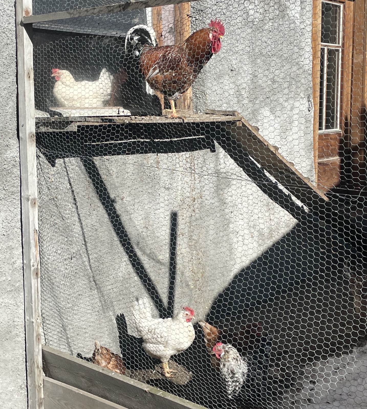 Toll, wie dieser Güggel seine Weiberschar, egal ob Körner pickend oder brütend über- bzw bewacht.
