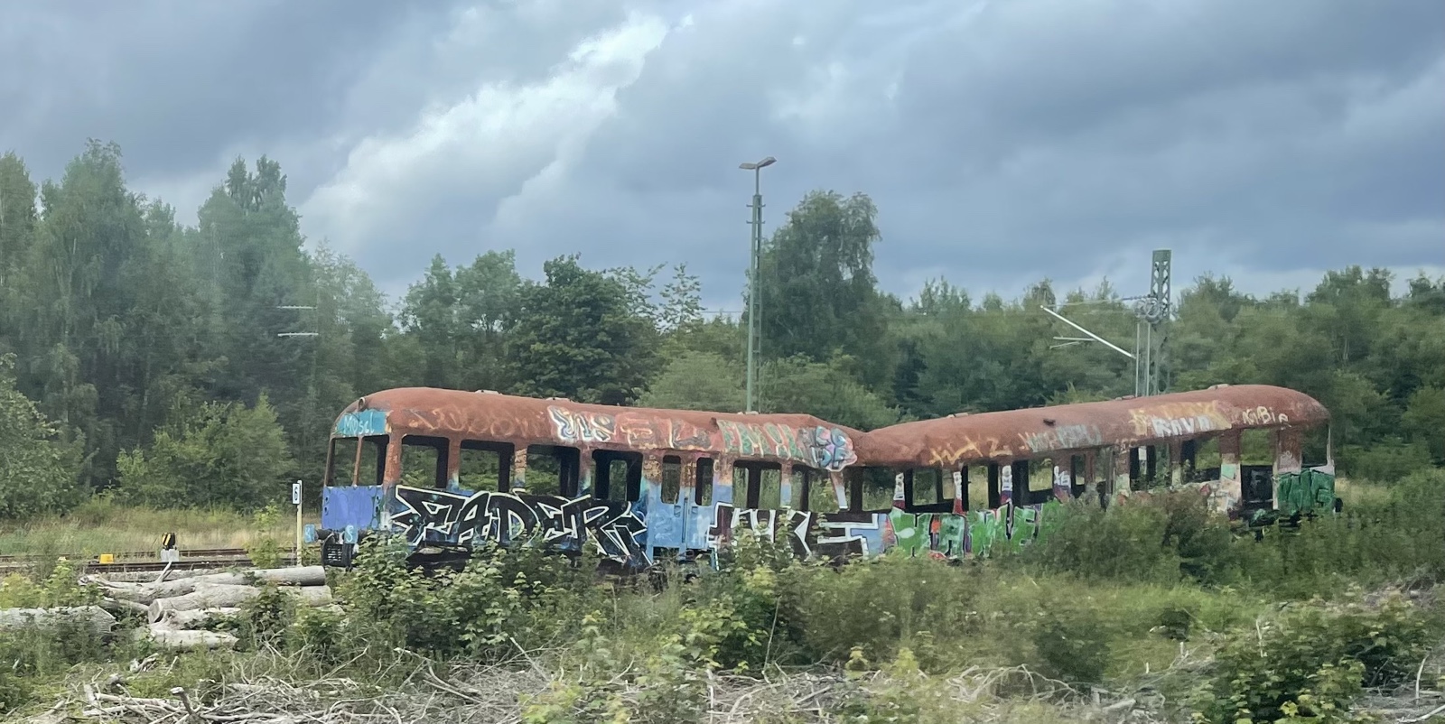 Kurz Vor dem Kieler Hauptbahnhof steht ein eingebrochenes Wrack im Gleisfeld.