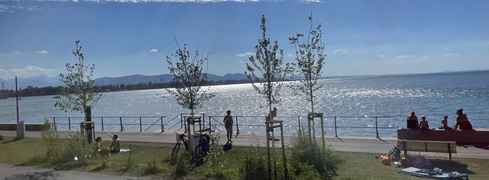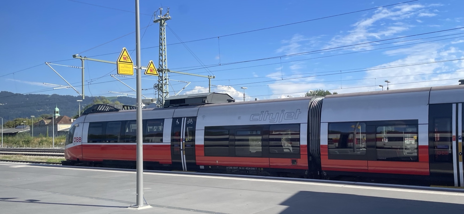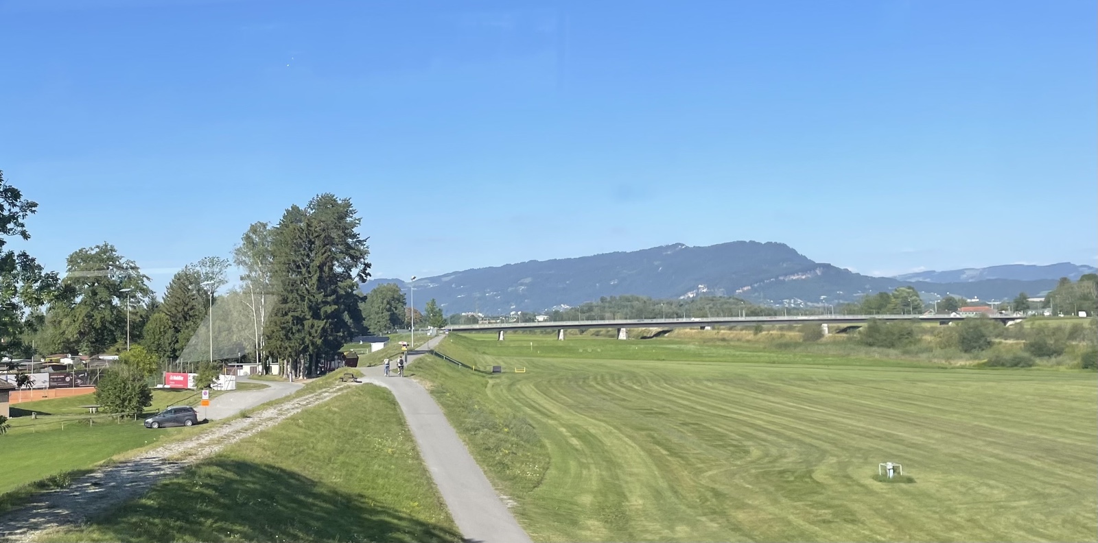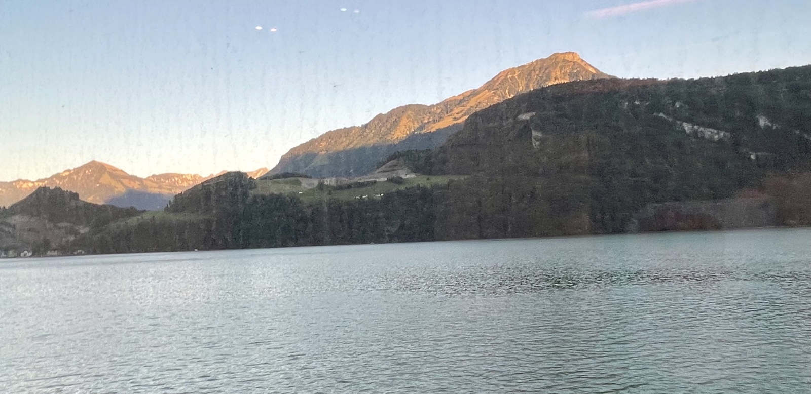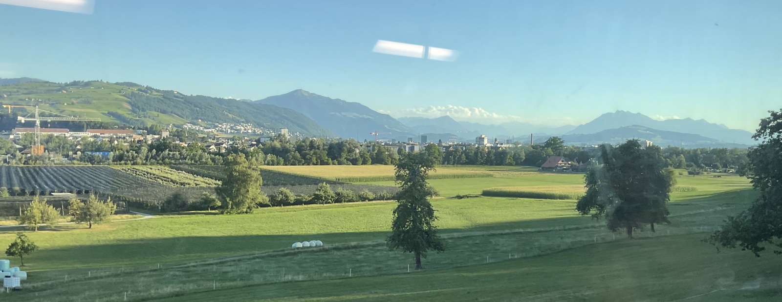 Ab Bregenz fährt der Zug schon wieder langsamer als erlaubt, so dass wir die Grenze Österreich – Schweiz und den ersten Schweizer Bahnhof,