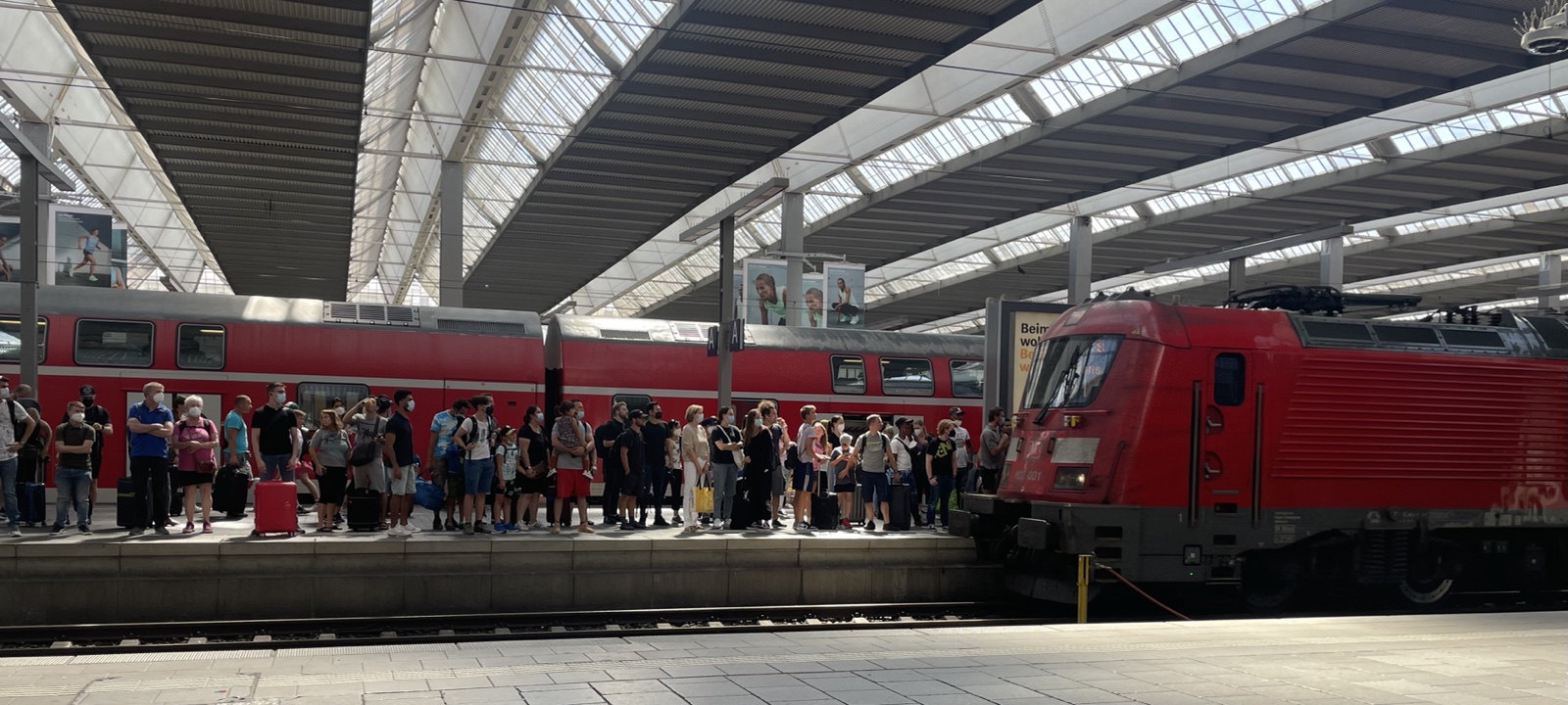 Der Euro City Express nach Zürich fährt auf Gleis 31, knappe 15 Fussminuten von der grossen Halle entfernt, ein Stiefplatz. Auch die Regel, wonach die erste Klasse am Prellbock steht, gilt hier offenbar nur für DB-Züge.
