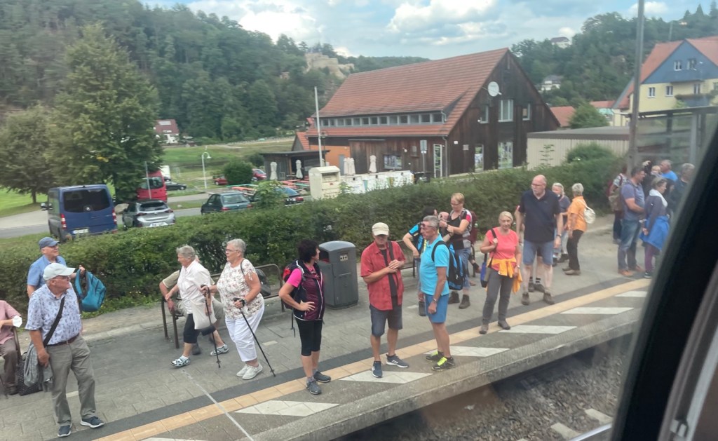 Anfang Nachmittag will ich nach Bad Schandau fahren. Die ersten 2 S-Bahn-Züge sind aber so voller 9-EuroTicket Touristen, dass ich mich nicht auch noch reindrängen will.