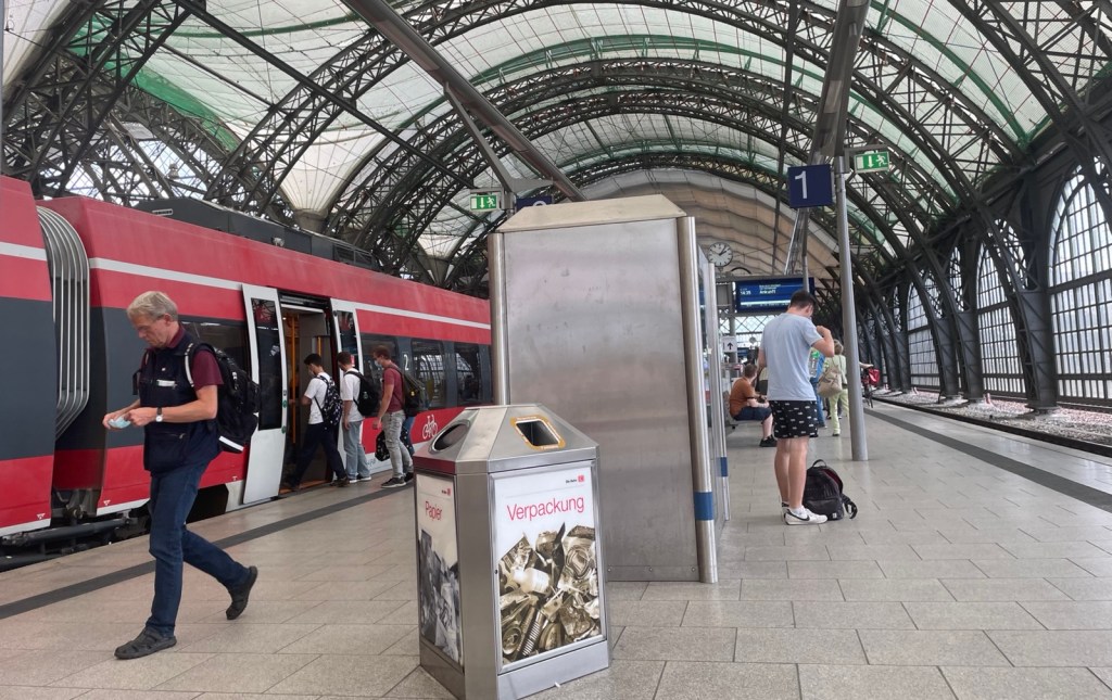 In Dresden Hauptbahnhof steige ich aus, obwohl ich eigentlich gerne bis Dresden Neustadt weiter gefahren wäre. Es drängelt sich aber so viele Leute auf dem Bahnsteig und vor der Türe des Wagens, dass ich die Flucht ergreife und aussteige.