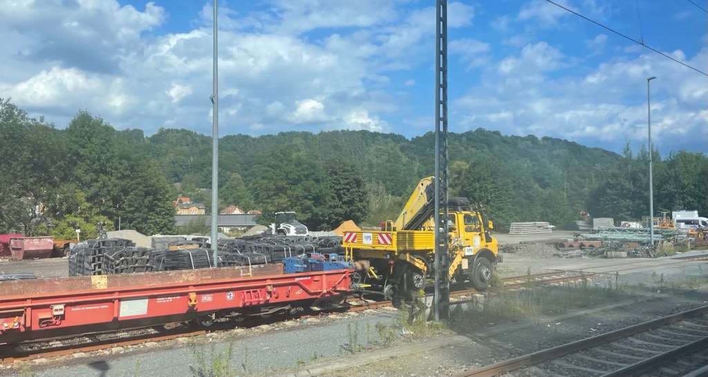 Komisch mutet mir auch an, dass für Gleisumbauten immer wieder alte oder auch neue Wagen von rollenden Landstrassen zum Einsatz kommen, um Gleisumbaumaschinen auf die Strecke transportieren zu können.