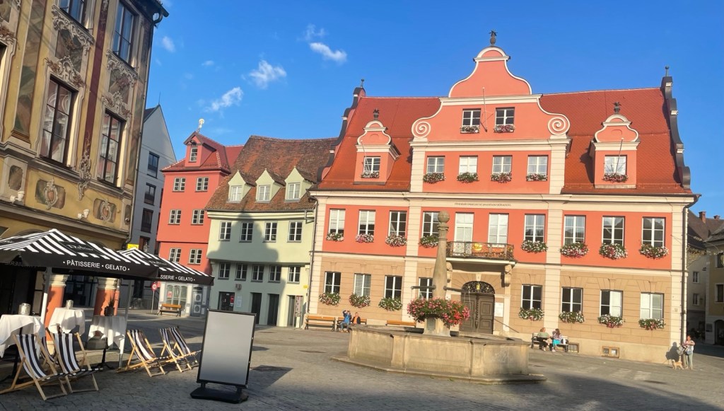 Nach 1 Stunde und 3 Minuten Fahrt ab München ist mein heutiger Reisetag vorbei. Ich habe im Gasthof „weisses Ross“ in Memmingen ein Zimmer für mich reserviert. Es gibt ein Buch, ich hab’s in meiner Kindheit erhalten, es heisst »zwischen zwei Zügen« und enthält Fakten, Karten und Sehenswürdigkeiten deutscher Städte. Memmingen ist da wahrscheinlich nicht drin, darum habe ich die Stadt auch nie besucht, bin aber hunderte Male daran vorbei gefahren.