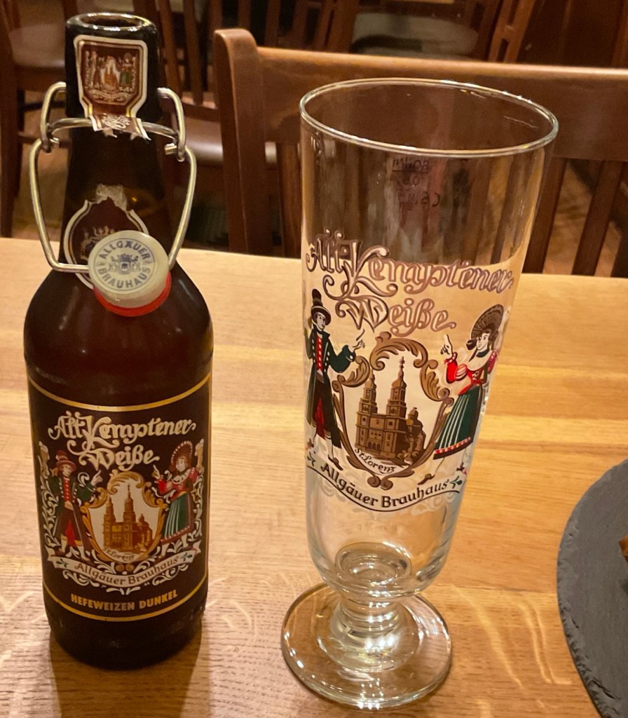 Zurück im Hotel, schreibe ich ein paar Momente lang meine Gedanken und Erlebnisse – auch von gestern noch – in meinen Reiseblog bevor ich mir in der Gaststube eine Kemptener Weisse kredenzen lasse.
