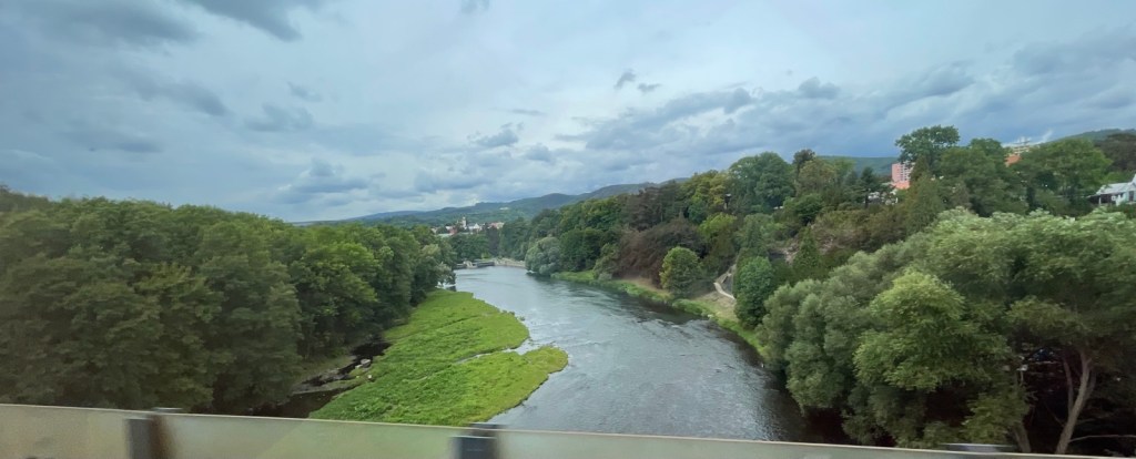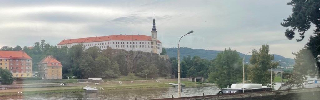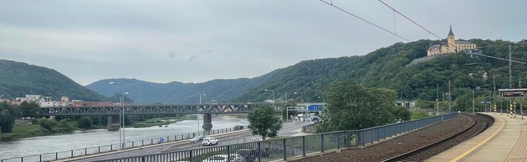 Mit Ereichen der tschechischen Stadt Decin schliesst sich ein Kreis. Ein paar Tage früher habe ich hier das Elbetal verlassen und bin über die Eisenbahnbrücke und vorbei am nur kurz sichtbaren Kloster Richtung Riesengebirge gereist.
