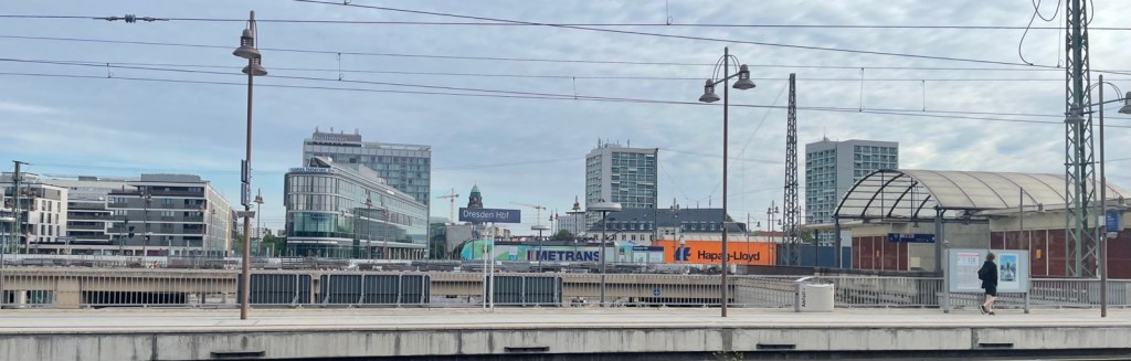 Um 9 Uhr bin ich bereits am Hauptbahnhof. Erstaunlich viele Reisende auf dem Bahnsteig. Ein Grossaufgebot der Polizei wartet ebenfalls auf den EuroCity. Fast pünktlich verlasse ich Dresden in Richtung Südosten.