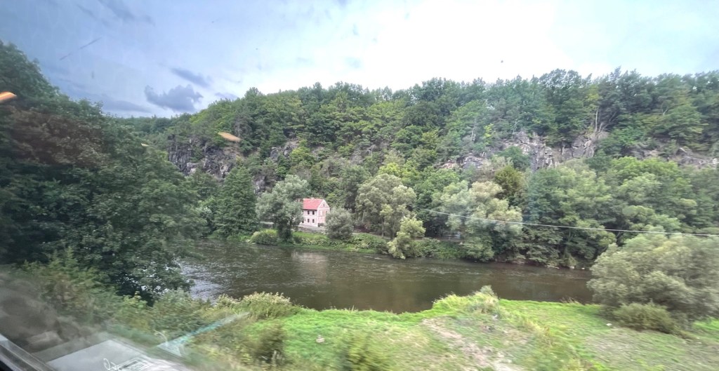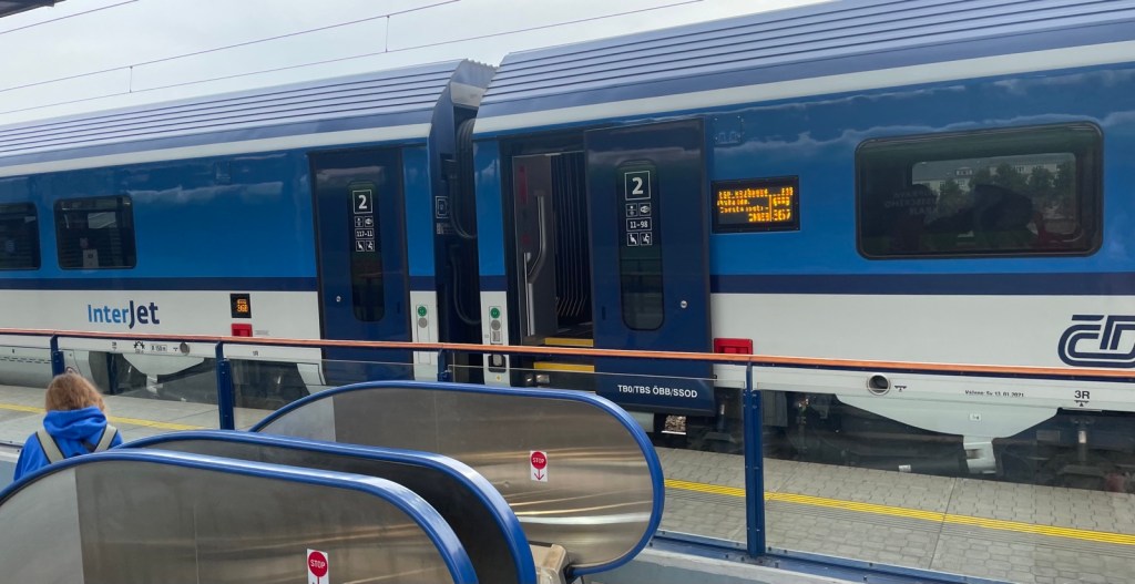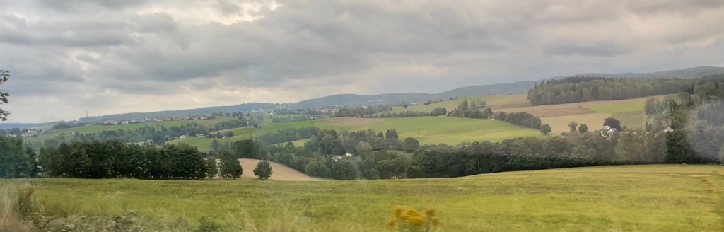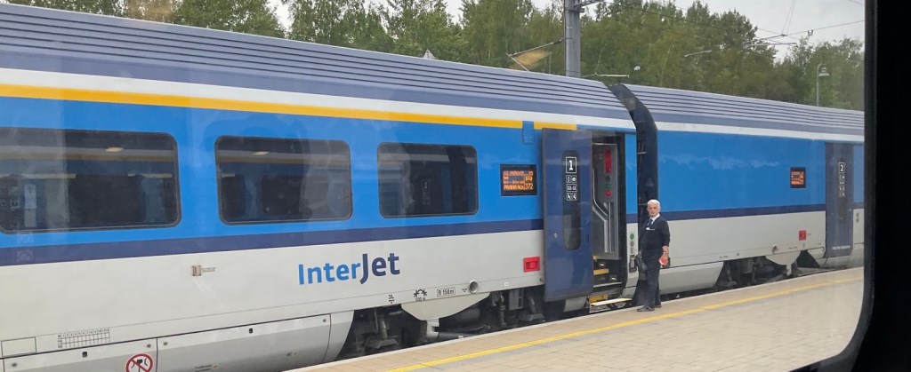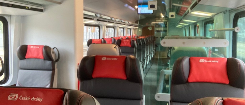 10.43 Uhr geht die Reise weiter, nun nach Südwesten, Richtung Karlovy Vary (Karlsbad). Ich bin ganz verwundert, den neuesten Zug auf dieser Strecke anzutreffen. Modernste Ausstattung, kabelfreies Laden von Handys (Mobiltelefonen)n, neu designte WCS, neu geformte und angeordnete Sitze, usw.