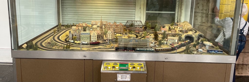 Mein Zug fährt eine Minute nach der offiziellen Abfahrtszeit ein. Während sich der Strom ankommender Reisenden auf den Bahnsteig ergiesst und wir eintreten, sprintet der Triebfahrzeugführer in seinen Badelatschen an die neue Zugspitze und fährt sofort ab; das war nun wirklich eine Kurzwende!