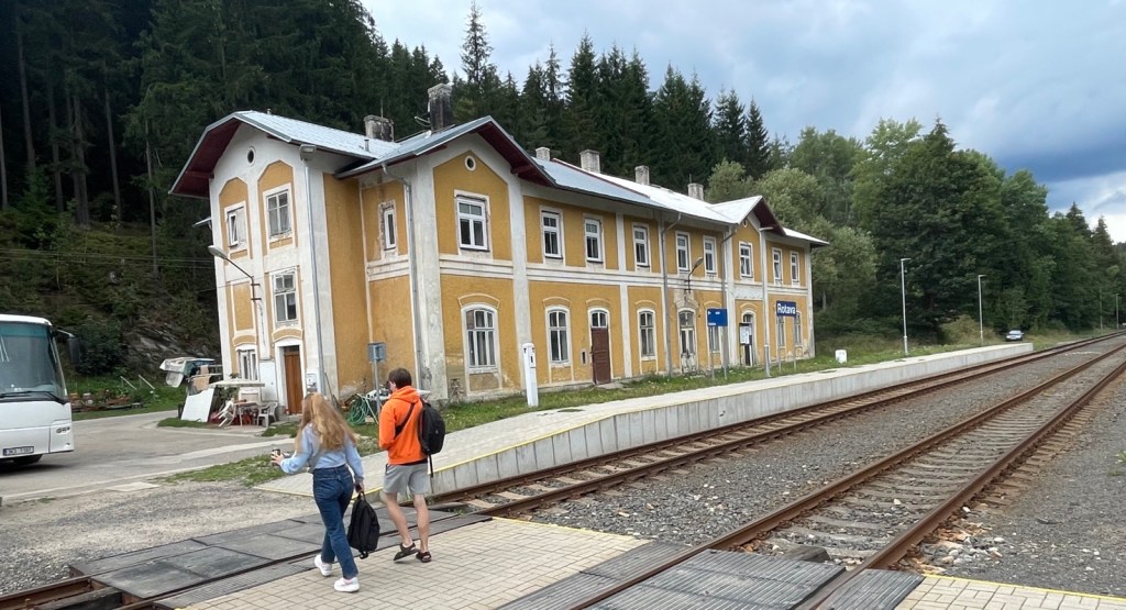 In Rotava steigen alle aus. 2 Tscheche bedeuten mir mitzukommen, es gibt heute SEV, nein nicht schweizerischer Eisenbahnerverband, sondern Schienersatzverkehr im Autobus.