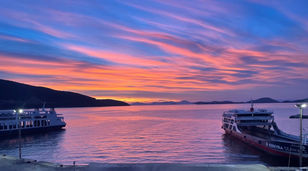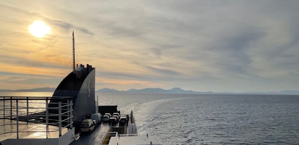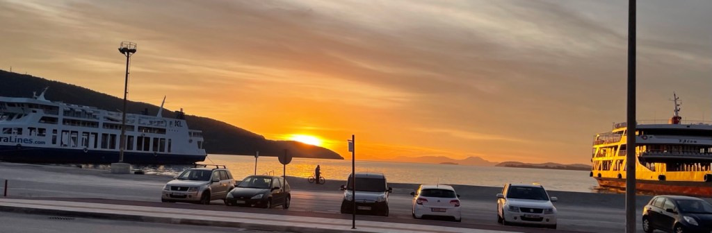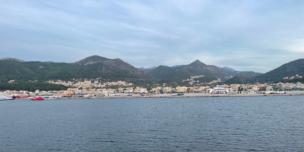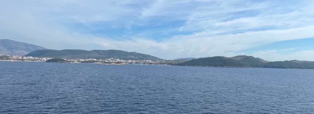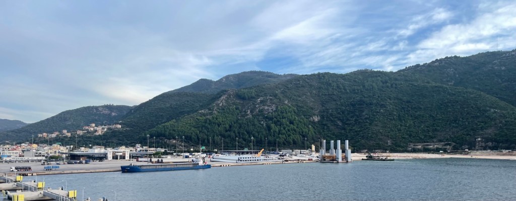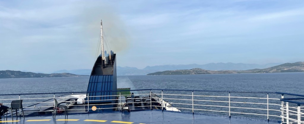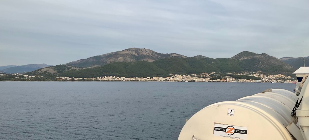 Igoumenitsa ist weit und breit noch nicht ins Sicht. Die Stadt die viele (auch ich) zuerst für Igoumenitsa hielten, entpuppt sich als Sarande in Albanien. Das Oberdeck leert sich, ich bleibe sitzen und geniesse die wärmenden Sonnenstrahlen und die vorbeiziehende Landschaft. Irgendwann nach 18:00 Uhr fahren wir in den Golf von Igoumenitsa ein.