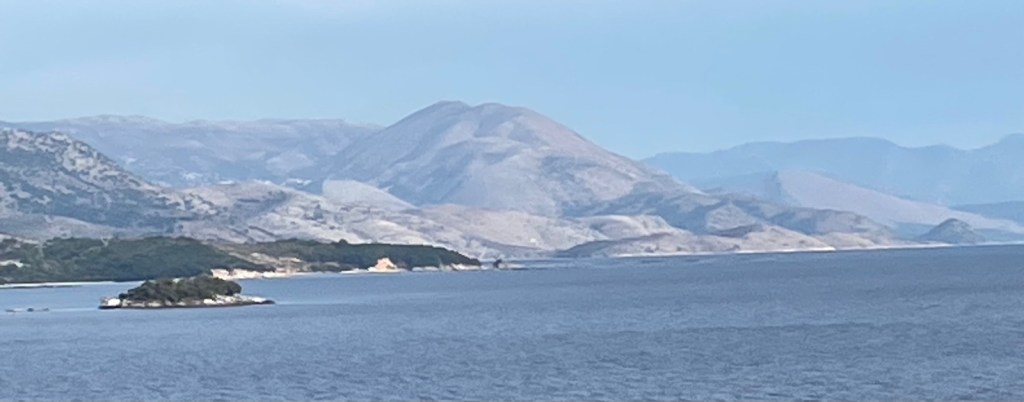 Gegen 16:45 Uhr fahren wir durch die Meerenge zwischen Kerkyra und dem Festland. An der schmalsten Stelle liegen die Landzungen nur gerade 2-3 Kilometer auseinander.