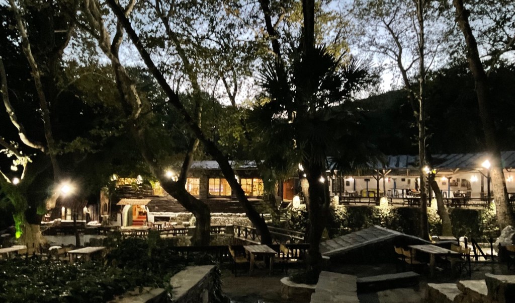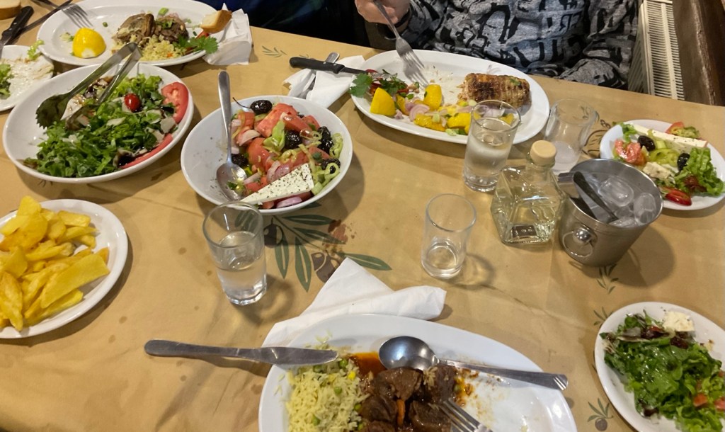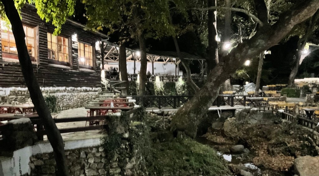 Das Abendessen geniessen wir in der vom Besitzer empfohlenen lauschigen Taverne in 200 Metern Entfernung.