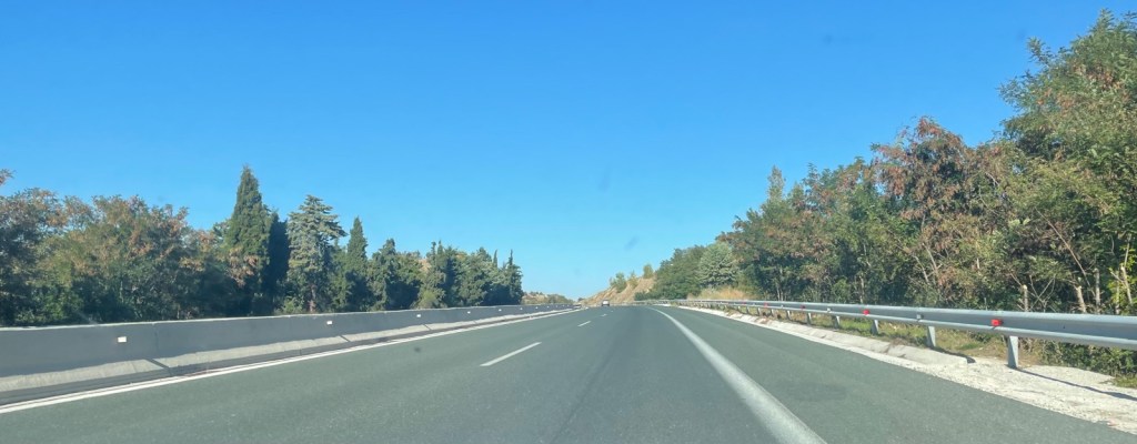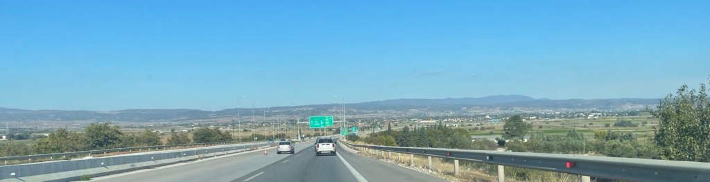 Michali holt sein Auto und alsbald fahren wir auf der Autobahn gen Nordosten.