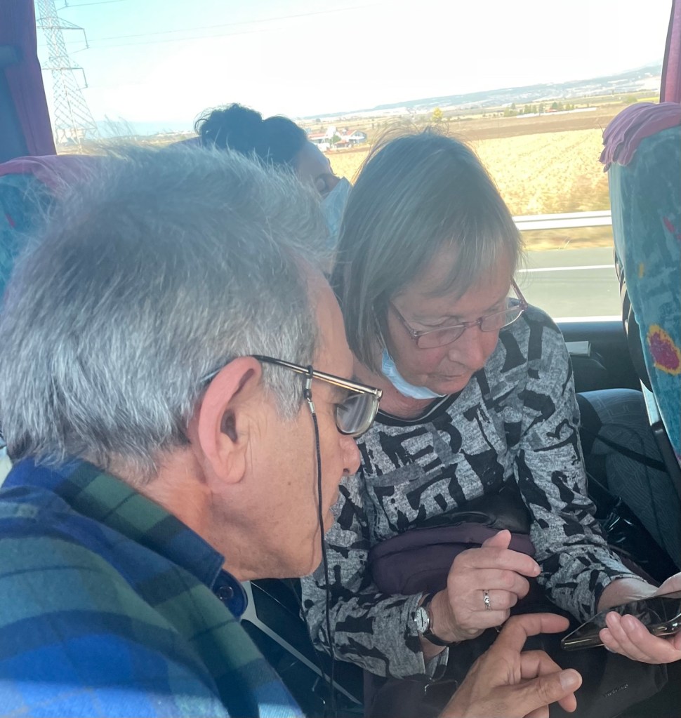 Yvonne und Michali arbeiten hin und wieder, während der teils eintönigen Reise, auf ihren Mobiltelefonen.