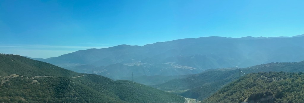 dann wieder an Bergflanken entlang, eine richtige Achter-Bus-Fahrt.