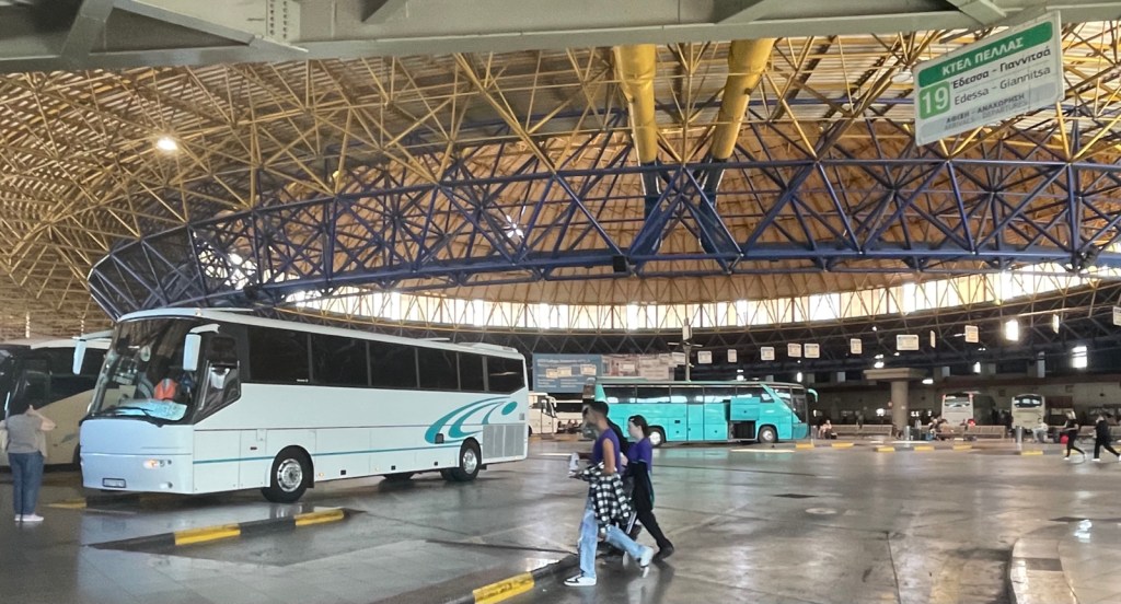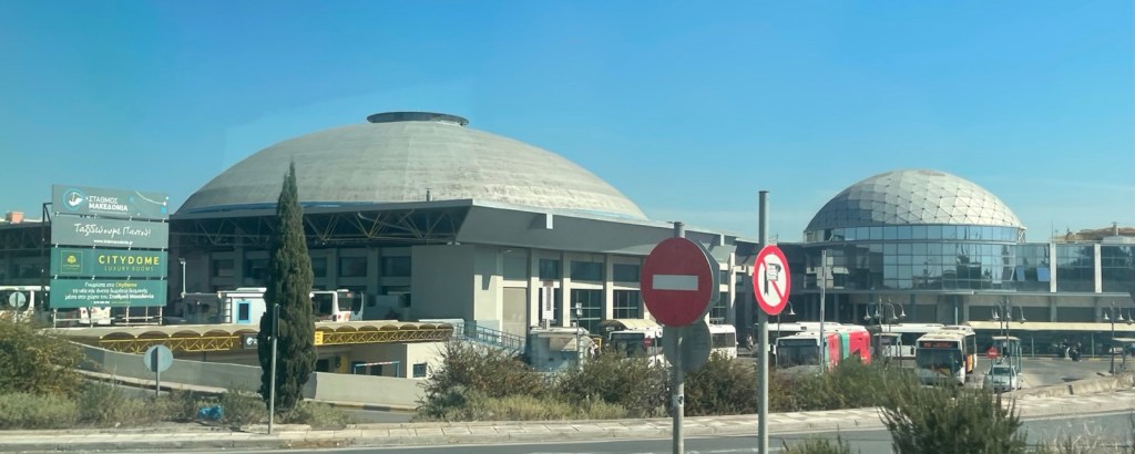 Dies ist weder ein Biogas-Tanklager noch eine Kirche oder eine Sportstätte – es ist die westliche, grosse Überlandbusstation von Thessaloniki.