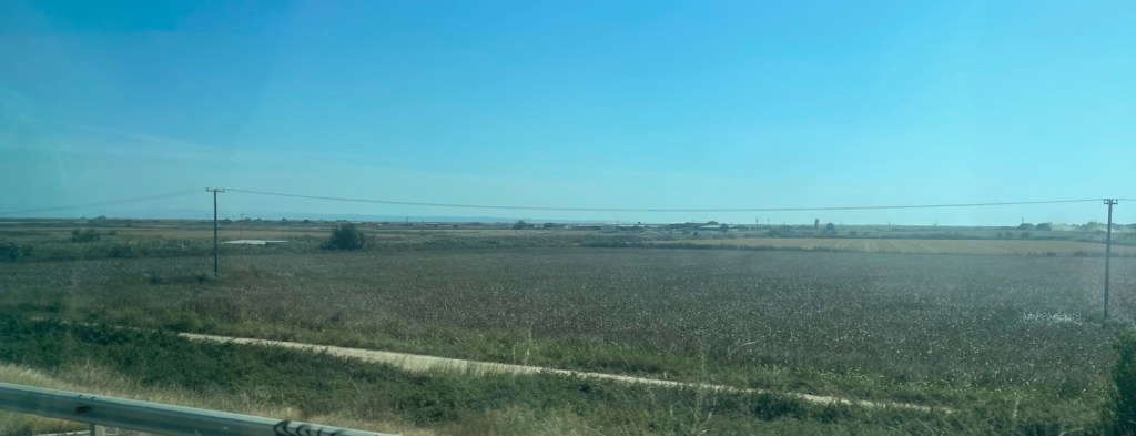 Entlang von Reis– und Baumwollfeldern nähern wir uns Thessaloniki.