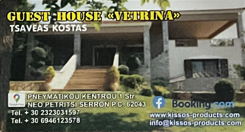 Für die kommende Nacht habe ich uns im letzten Dorf vor der Grenze zu Bulgarien, in Neo Petritsi, 2 Zimmer im Apartmenthaus, Arxontiko Vetrina, reserviert. Ich werde am morgigen Tagebuch ein paar Bilder hierzu veröffentlichen.