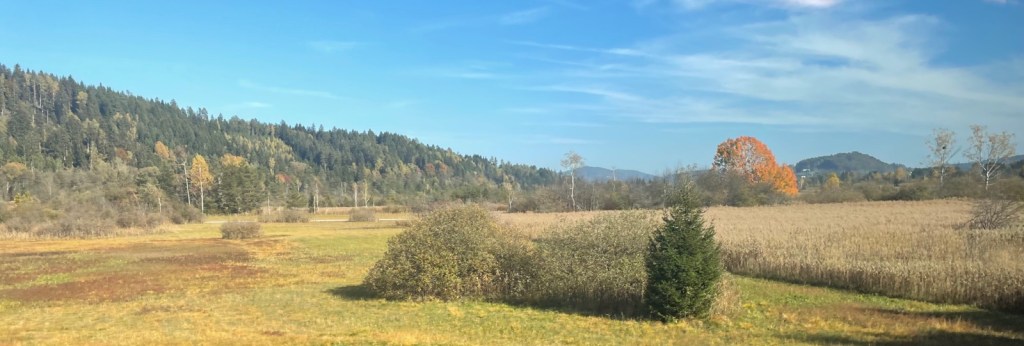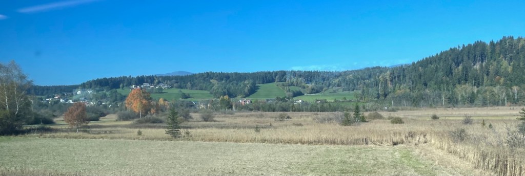 Die Herbstfarben nicht nur aber vorallem im Finkensteiner Moor sind hinguckenswert, so wie auch die Kette der Karawanken.