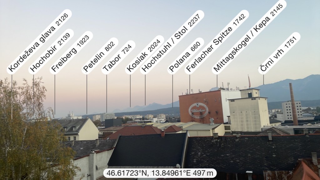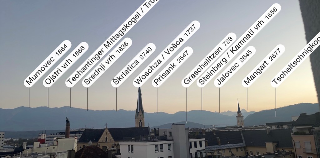 Abendlicht auf die Karawanken, vom Hotelzimmer aus.