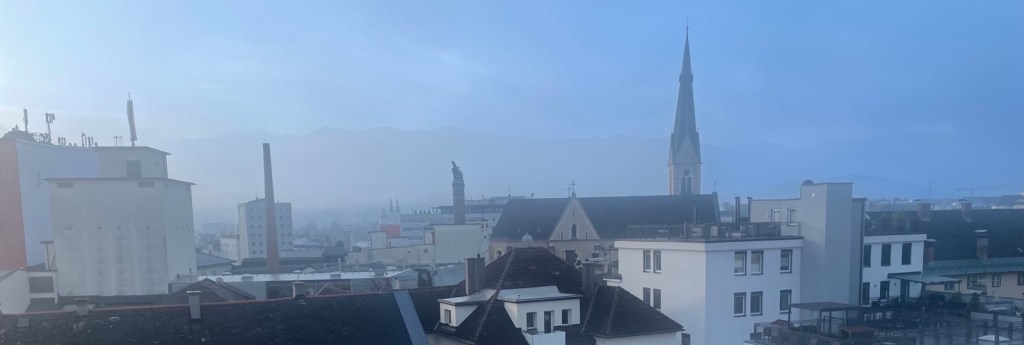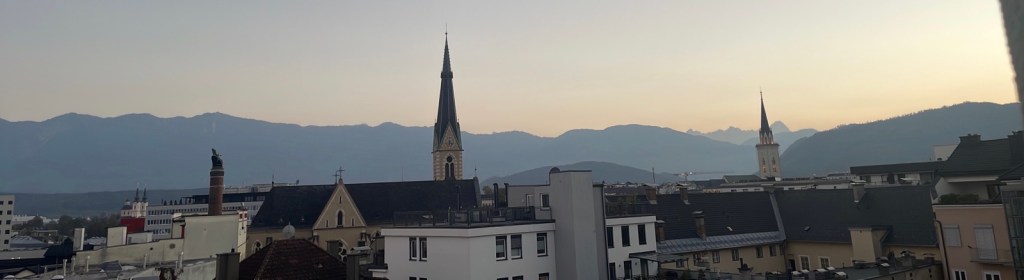 Voraus geht eine „schlimme“ Sache: da ich mit Sitzplätzen in Restaurants zur Abendessenszeit hier in Villach nicht die besten Erfahrungen gemacht habe, telefoniere ich vorgängig, um 19.40. Ich müsse sofort kommen, um 20 Uhr werde heute die letzte Essensbestellung an die Küche möglich sein.