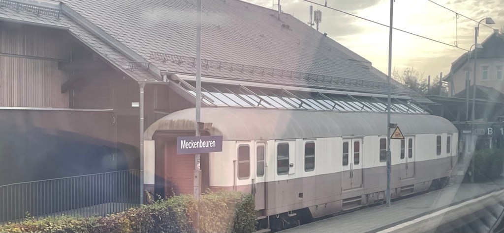 Meckenbeuren, hier zweigte einst eine kurze Stichbahn nach Tettnang ab. Ich glaube allerdings nicht, dass ein so moderner Gepäckwagen je auf dieser Strecke verkehrte.