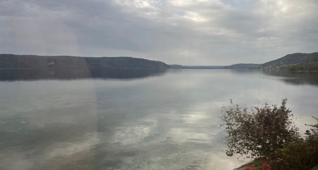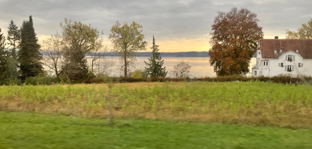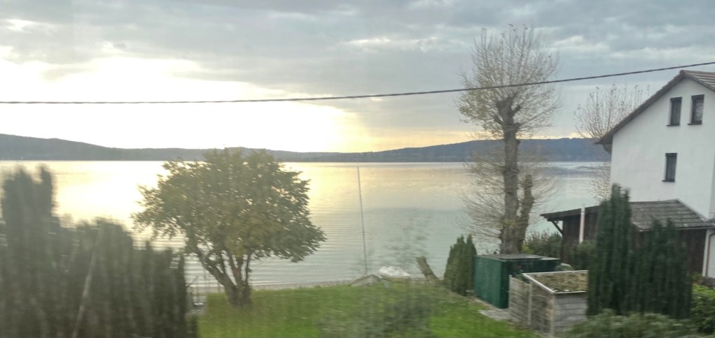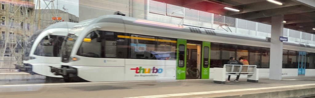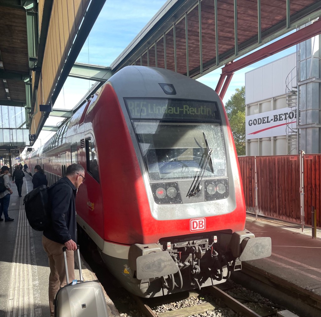 Eine überaus freundliche Zugbegleiterin fragt mich gleich bei der ersten Türe wohin ich denn reisen würde und wie. Friedrichshafen, erste Klasse, oben, nicht im Ruheabteil. Darf ich ihnen ihren Koffer abnehmen? Wäu, so einen Service habe ich nicht erwartet. Die Frau begleitet mich ins obere Stockwerk und deponiert meinen Koffer in der Nähe eines freien Sitzes. Toll! Ich habe kaum Zeit mich hinzusetzen, da fährt der Zug schon ab.