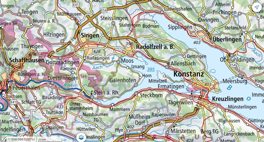 Kurz darauf erreichen wir Friedrichshafen Stadt. Nach einer kurzen Verschnaufpause geht die Reise weiter, bald entlang am Nordufer des Bodensees und des Überlingersees.