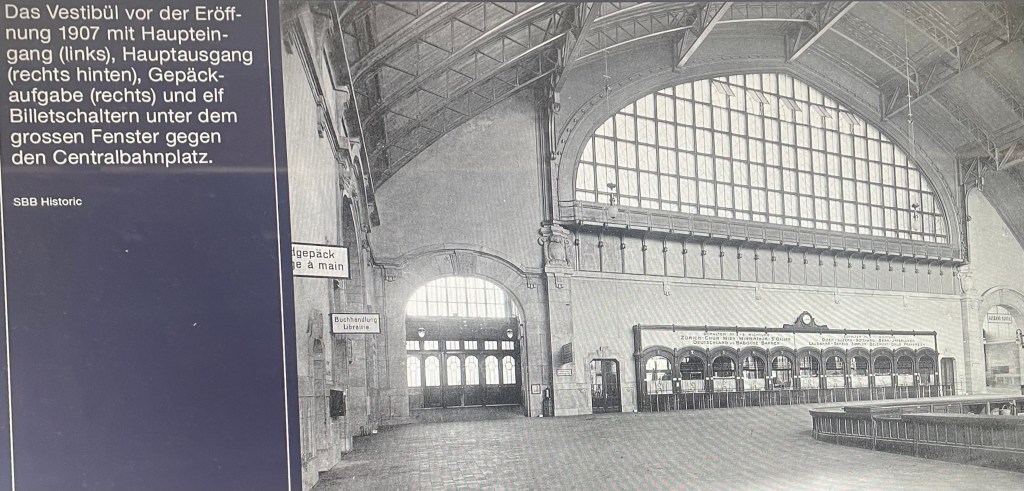 Kurz bevor ich in den Zug einsteige, werde ich auf eine interaktive Ausstellung in der ehemaligen Schalterhalle aufmerksam.