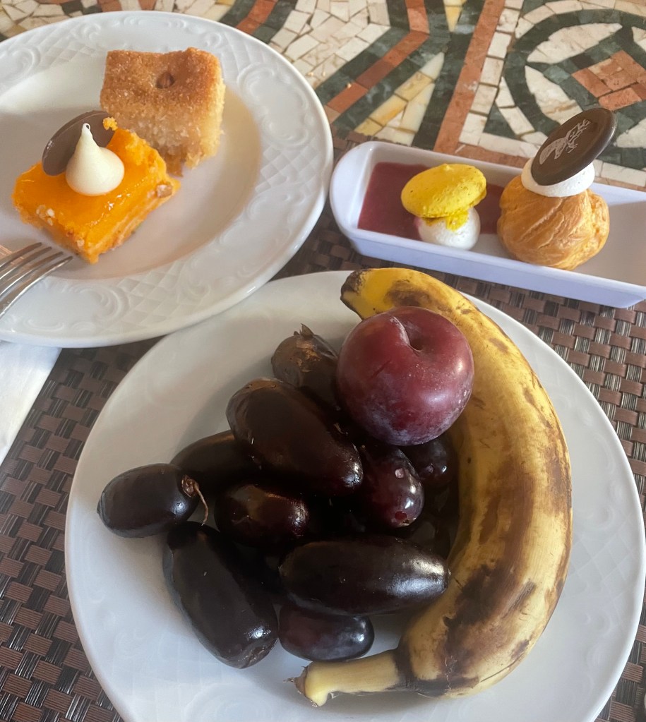 Schon beim Mittagessen sind alle guten Vorsätze vergessen. Dennoch möchte ich niemanden verführen und zeige hier nur was es zum Dessert gab.