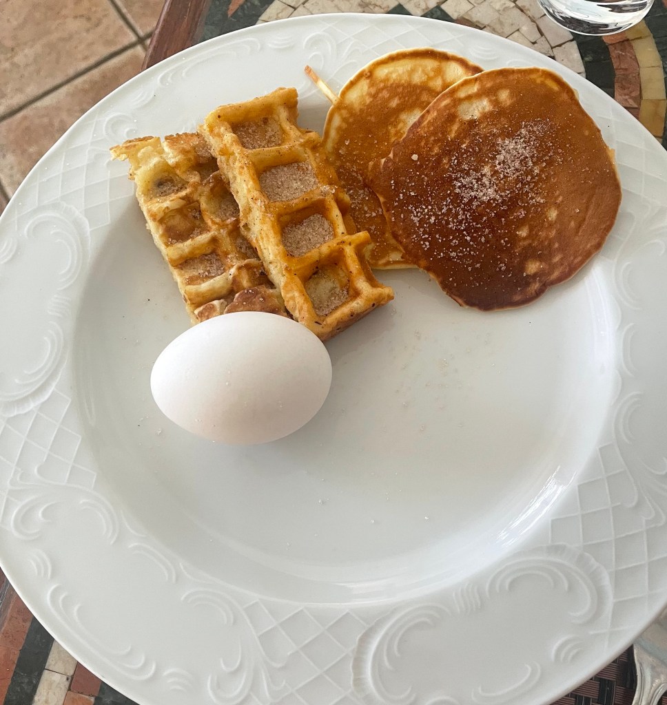 Karges Frühstück— natürlich auf eigenen Wunsch. Ich kann nicht jeden Tag 9‘999 Kalorien oder mehr vertilgen!
