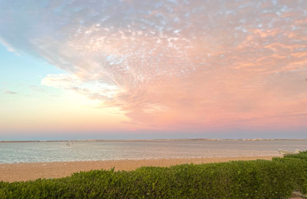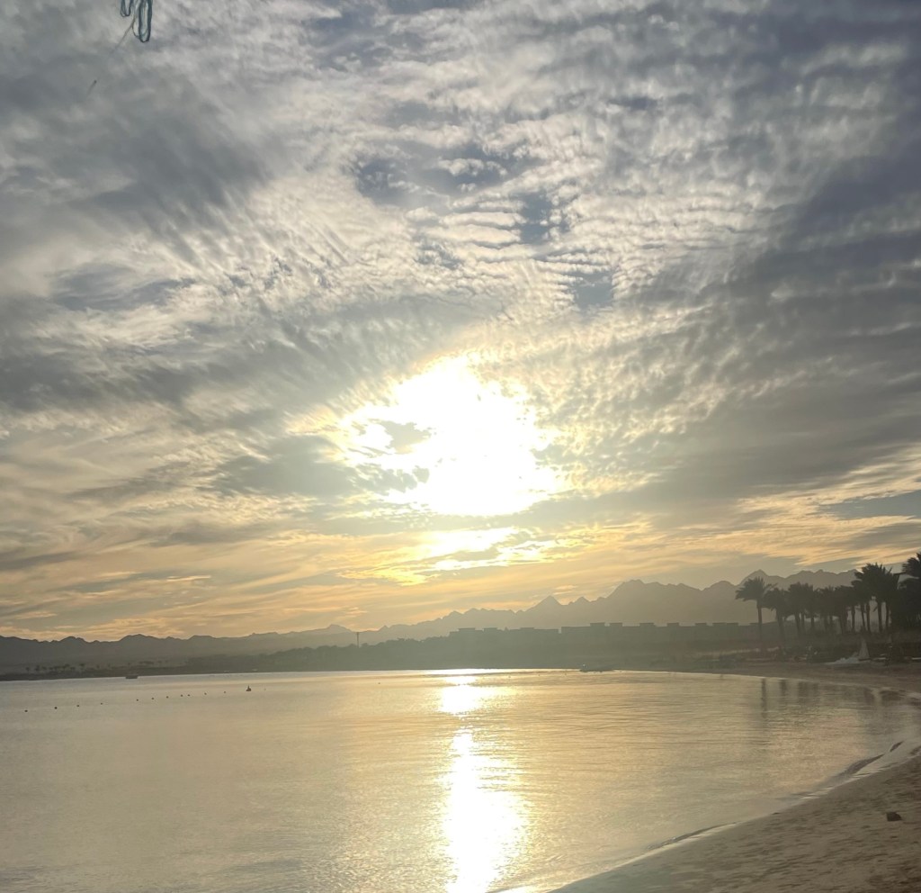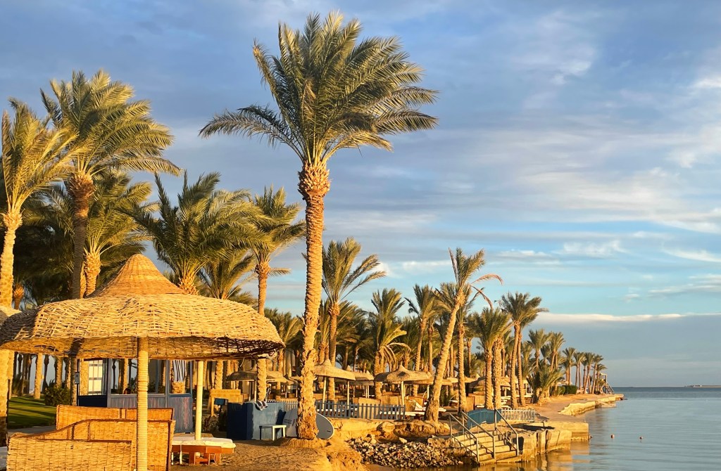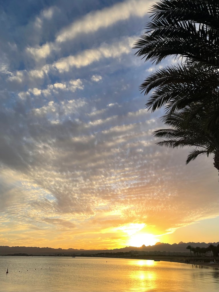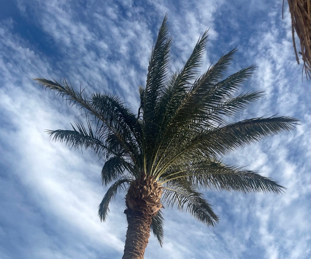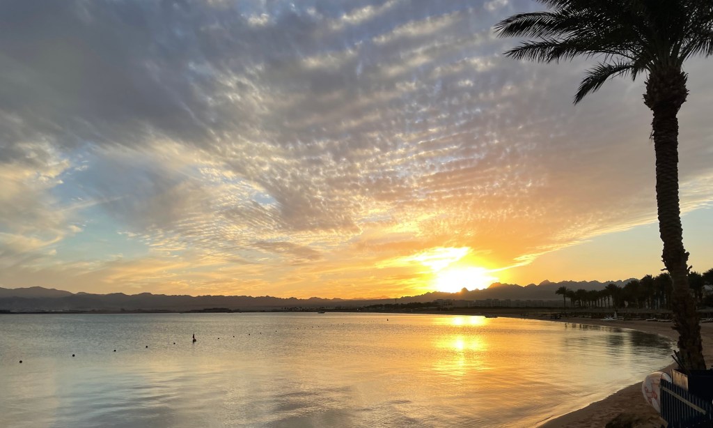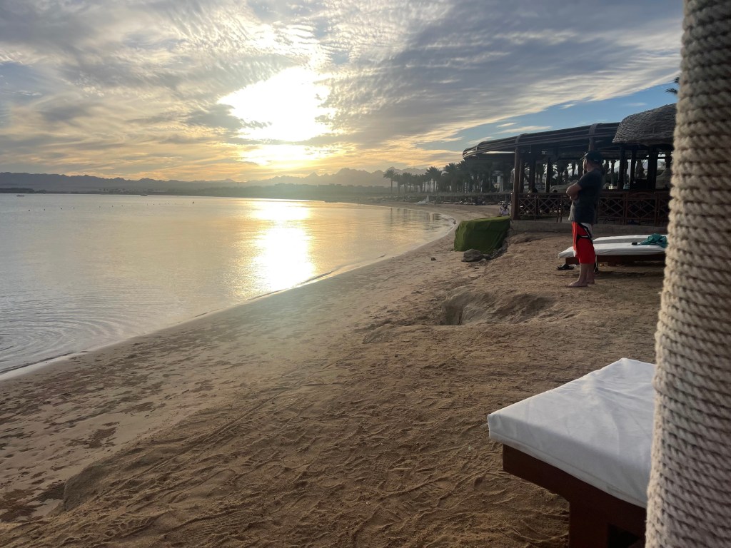 16.50 Uhr, die Abendsonne an den Palmen und am Strand strahlt viel mehr Wärme aus als hier am Boden wirklich ankommt.