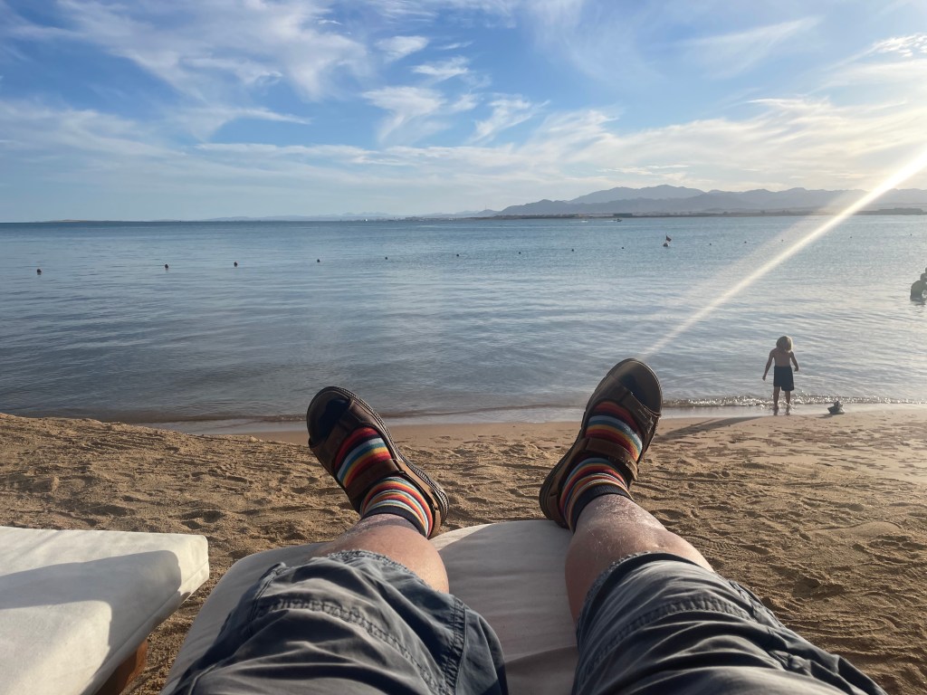 Um 16 Uhr wird rasch kühler. Nachdem ich aber gewisse Kleidungsstücke übergezogen habe geniesse ich weitere 40 Minuten auf der Strandliege.
