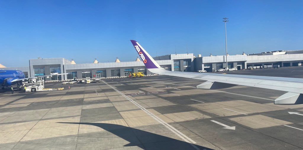 40 Minuten nach dem Abflug überfliegen wir in 7000 Metern über Meer, den Grossraum Kairo.