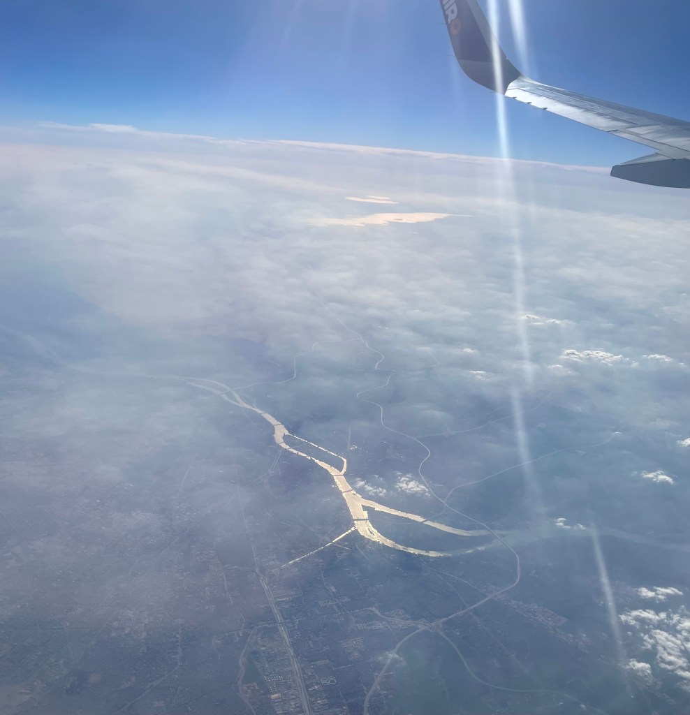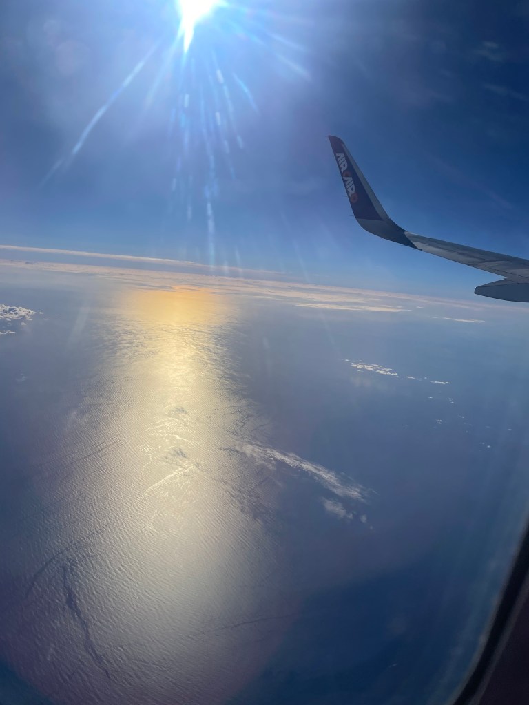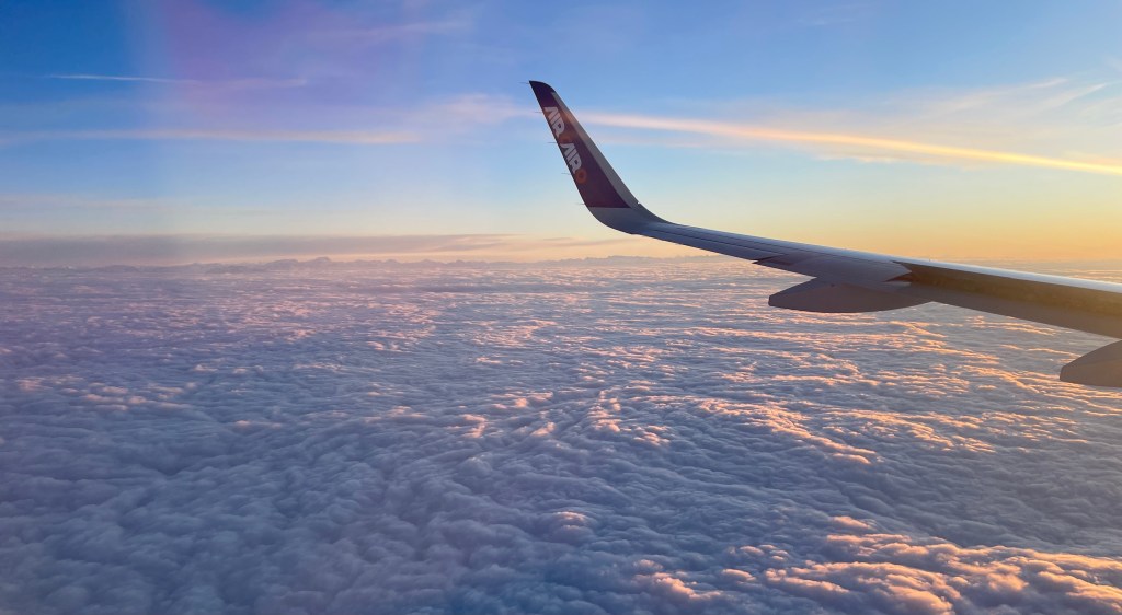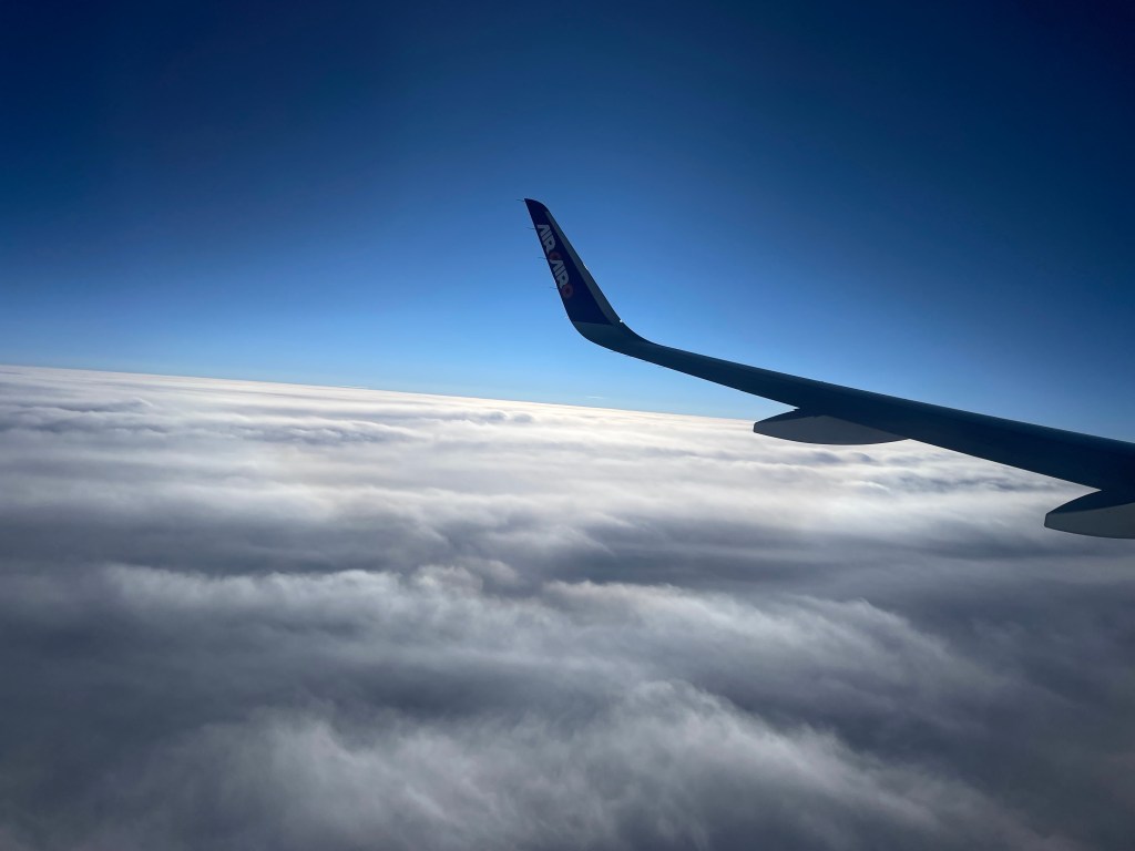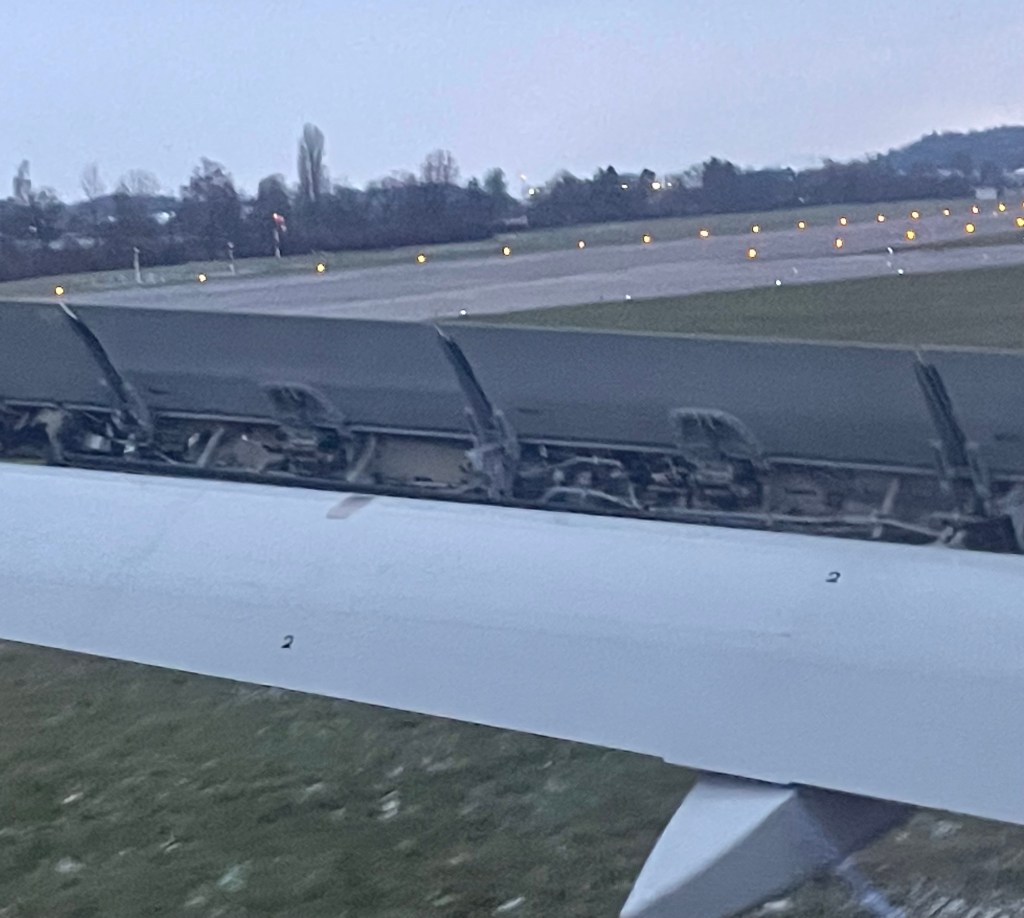 4 Minuten nachdem ich das Flugzeug betreten habe, rollen wir bereits vorwärts durch den weitläufigen Flughafenvorplatz und 10 Minuten später sind wir bereits in der Luft.