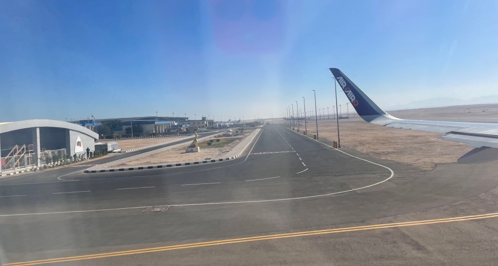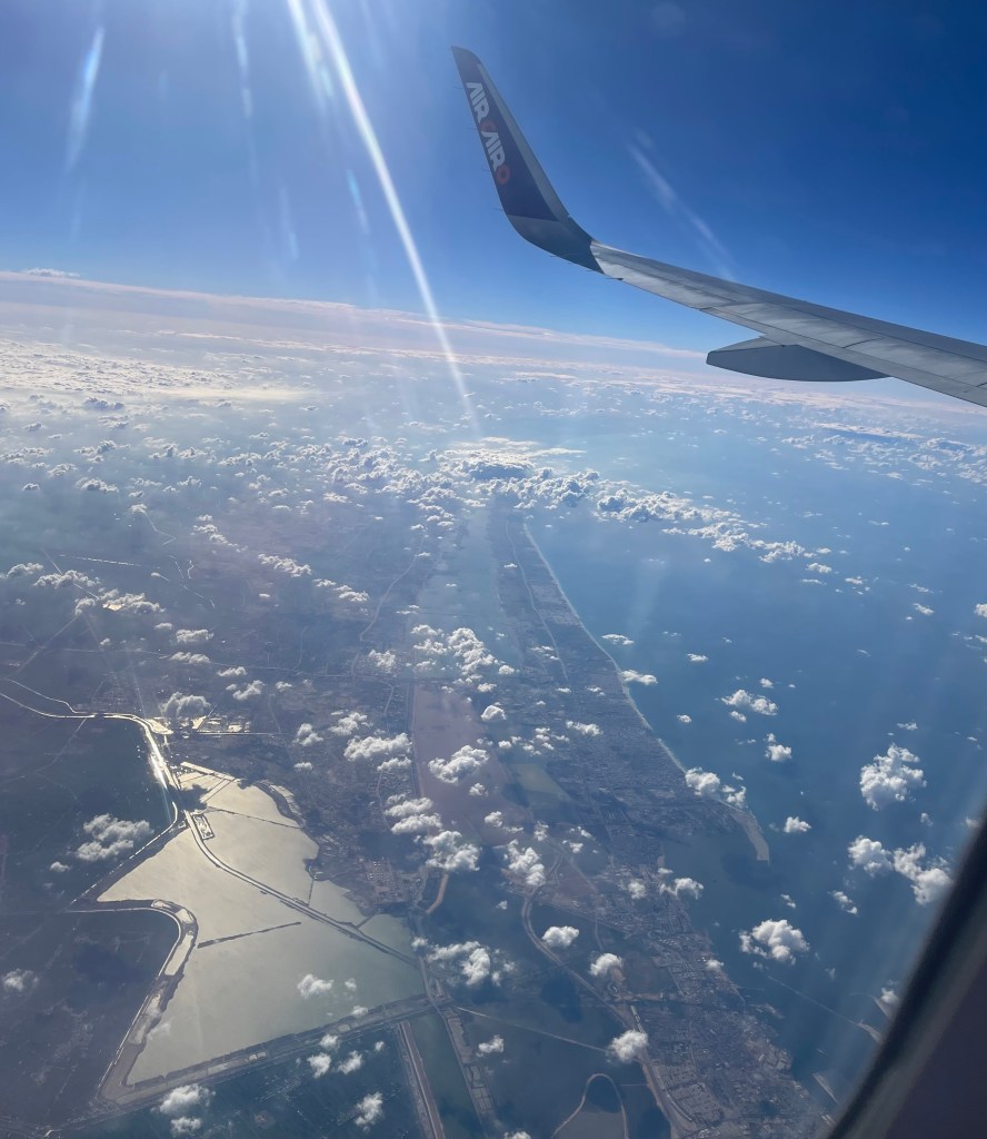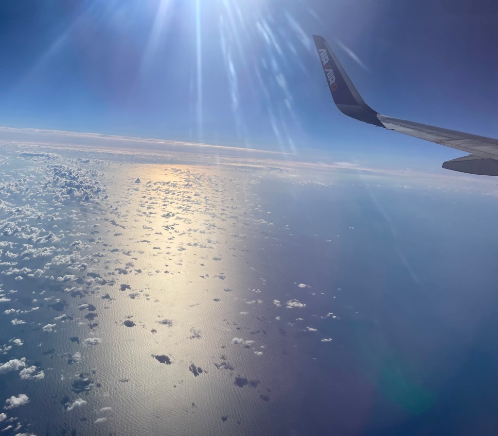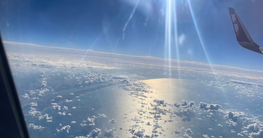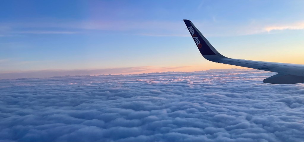 4 Minuten nachdem ich das Flugzeug betreten habe, rollen wir bereits vorwärts durch den weitläufigen Flughafenvorplatz und 10 Minuten später sind wir bereits in der Luft.