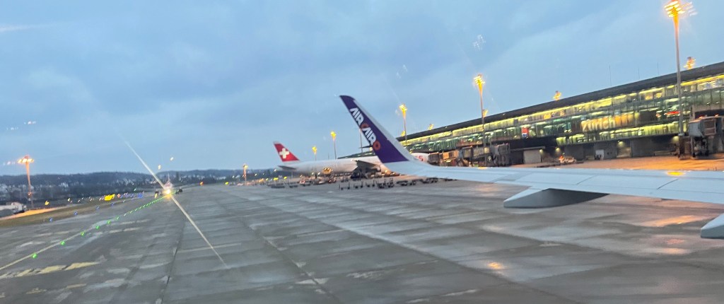 Um 17:11 Uhr berühren wir auf der Piste 14/32 des Zürcher Flughafens den Schweizer Boden.
